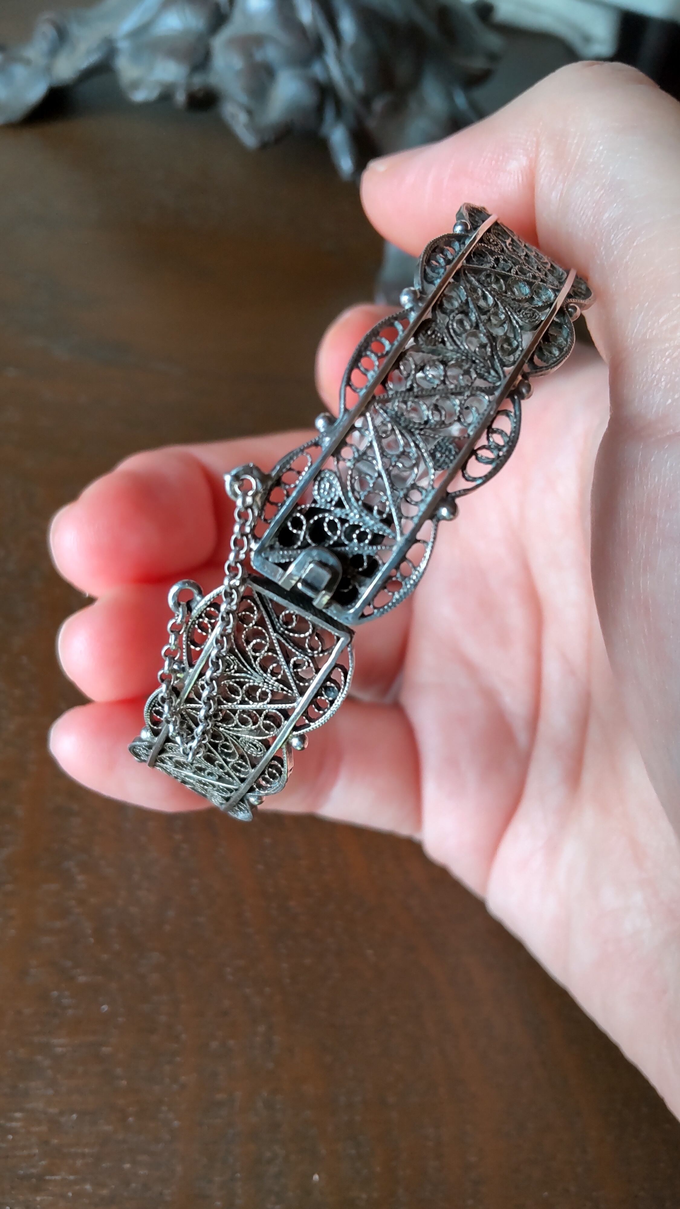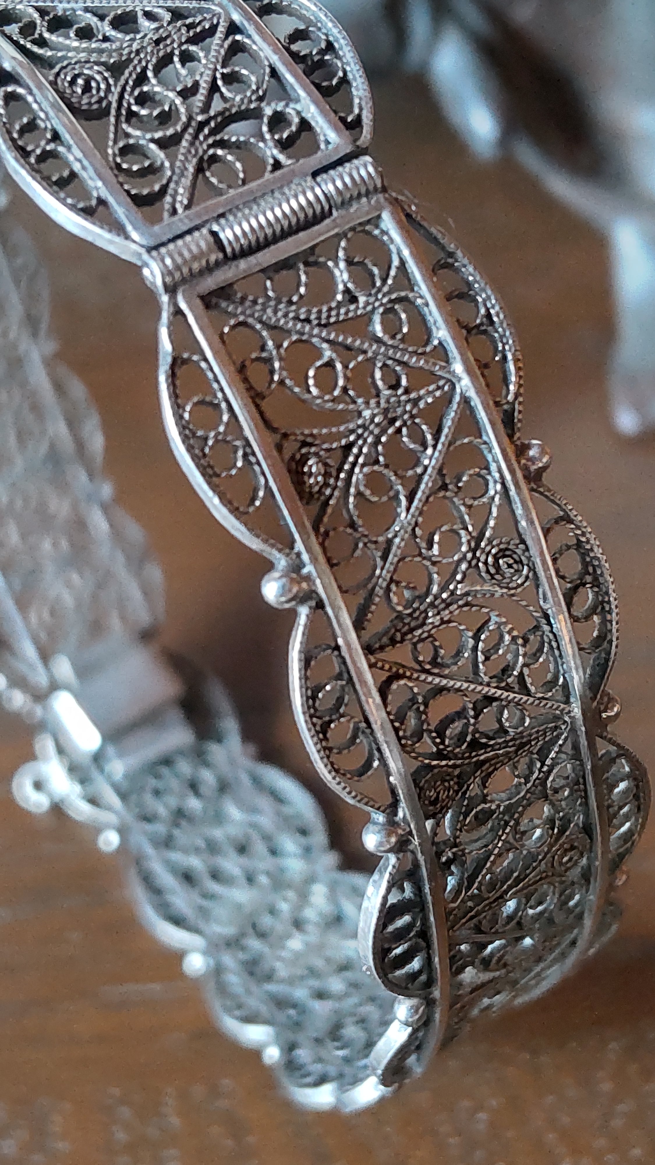 イギリスで出会った繊細なフィリグリー細工のバングル ブレスレットです。