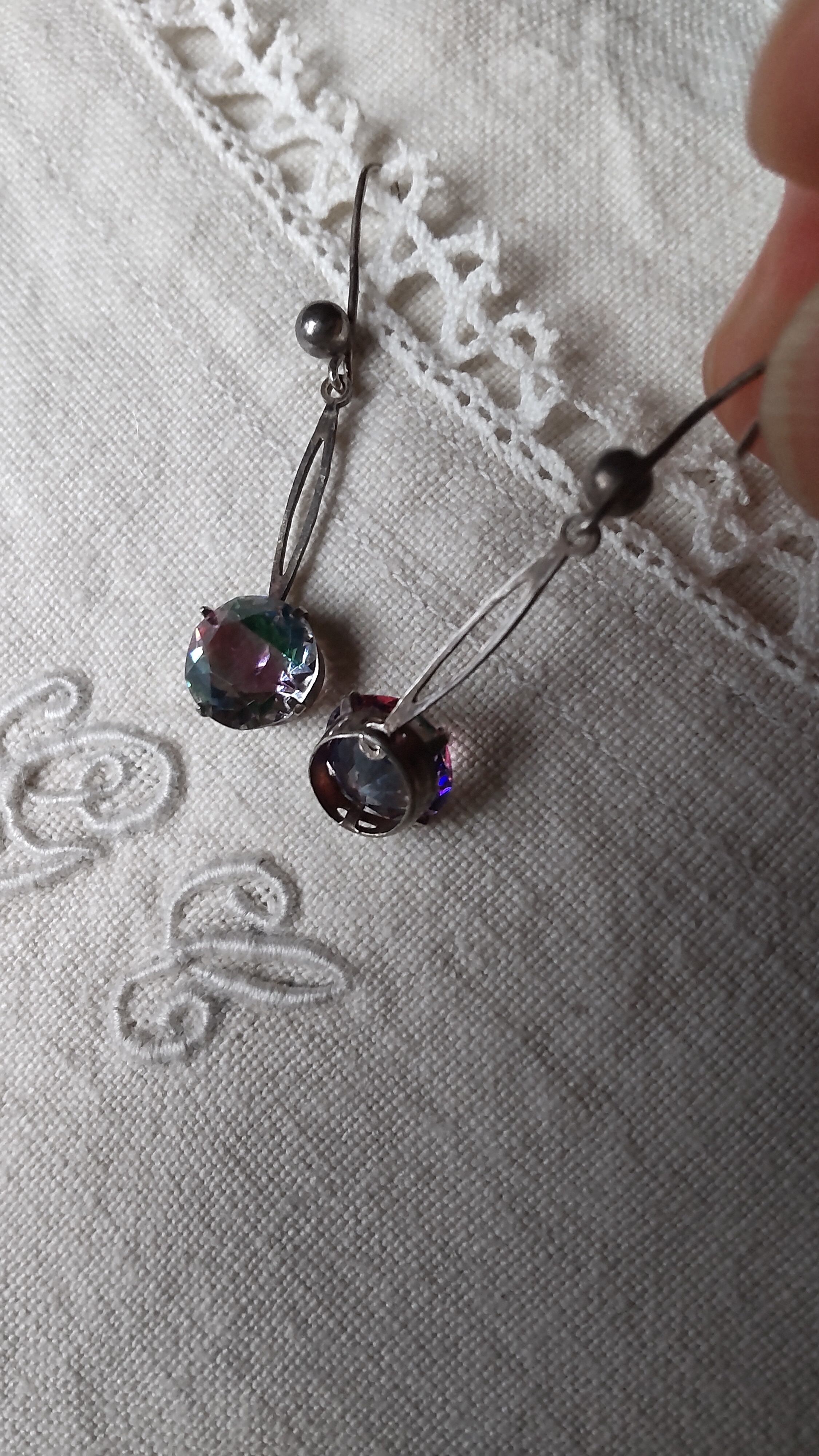 サイズ: ピアスのフックの玉の部分からアイリス硝子の下部分までの長さ約29mm、アイリス硝子のストーン直径約9mm