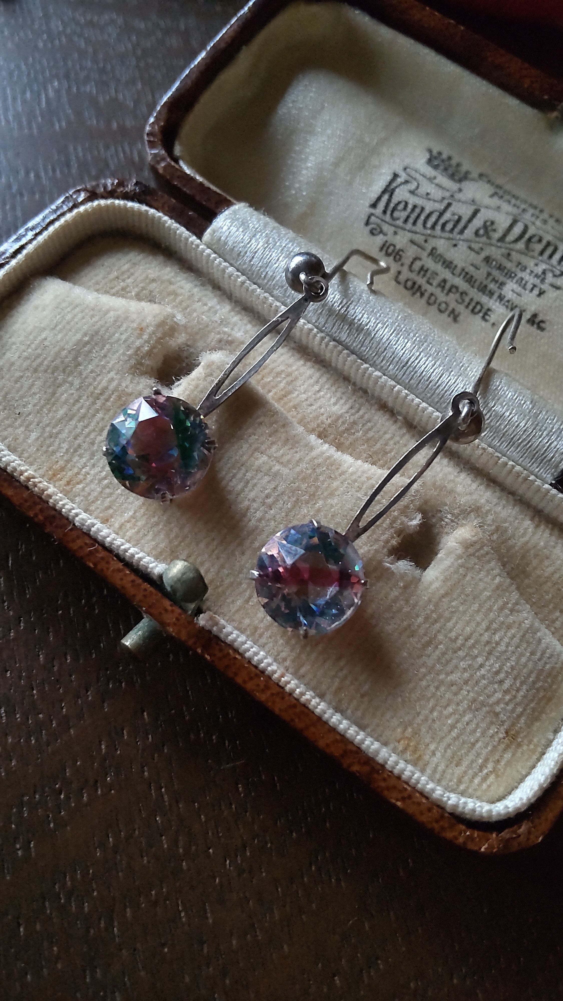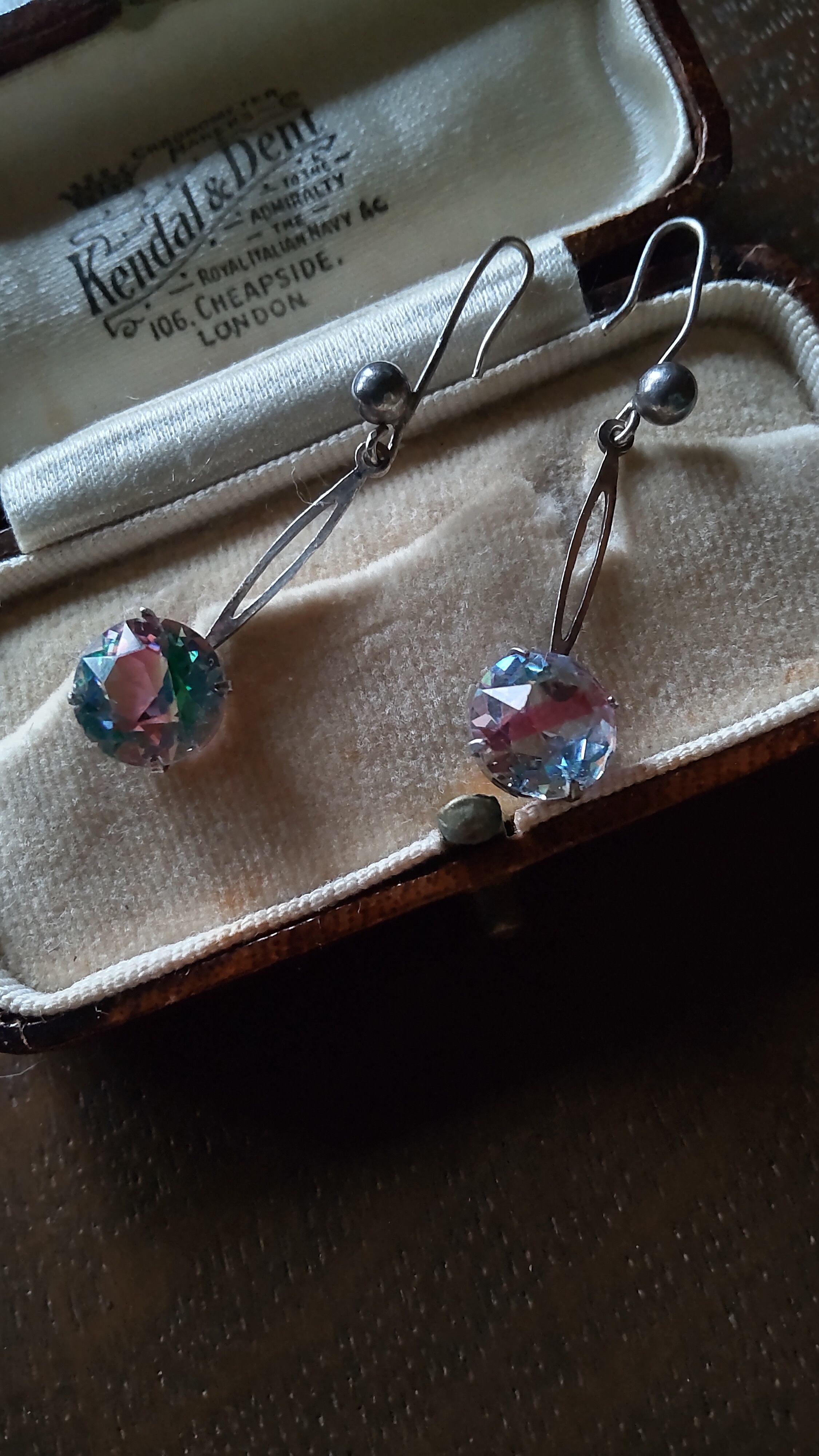 ヴィンテージ 淡い色合いのアイリスガラスピアスです。