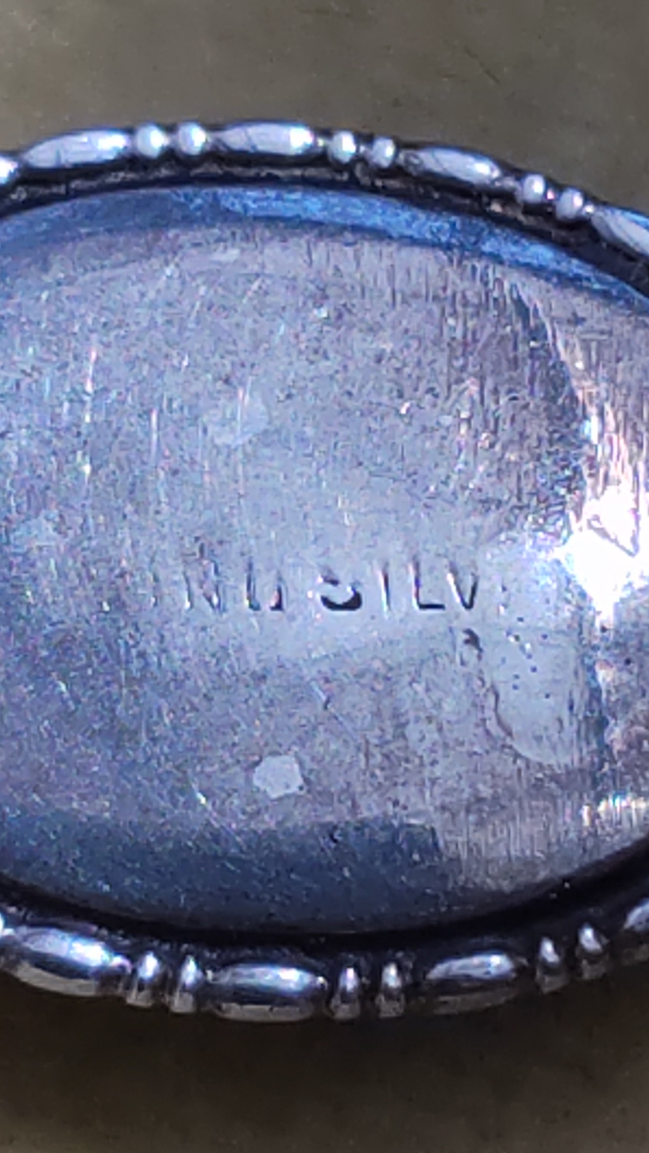 裏にはsterling silver と刻印有り、100年近く愛されて来たヴィンテージのアクセサリーなのでシルバーが擦れて刻印が薄れていますがそれだけ愛用されていたお品だったと思います。