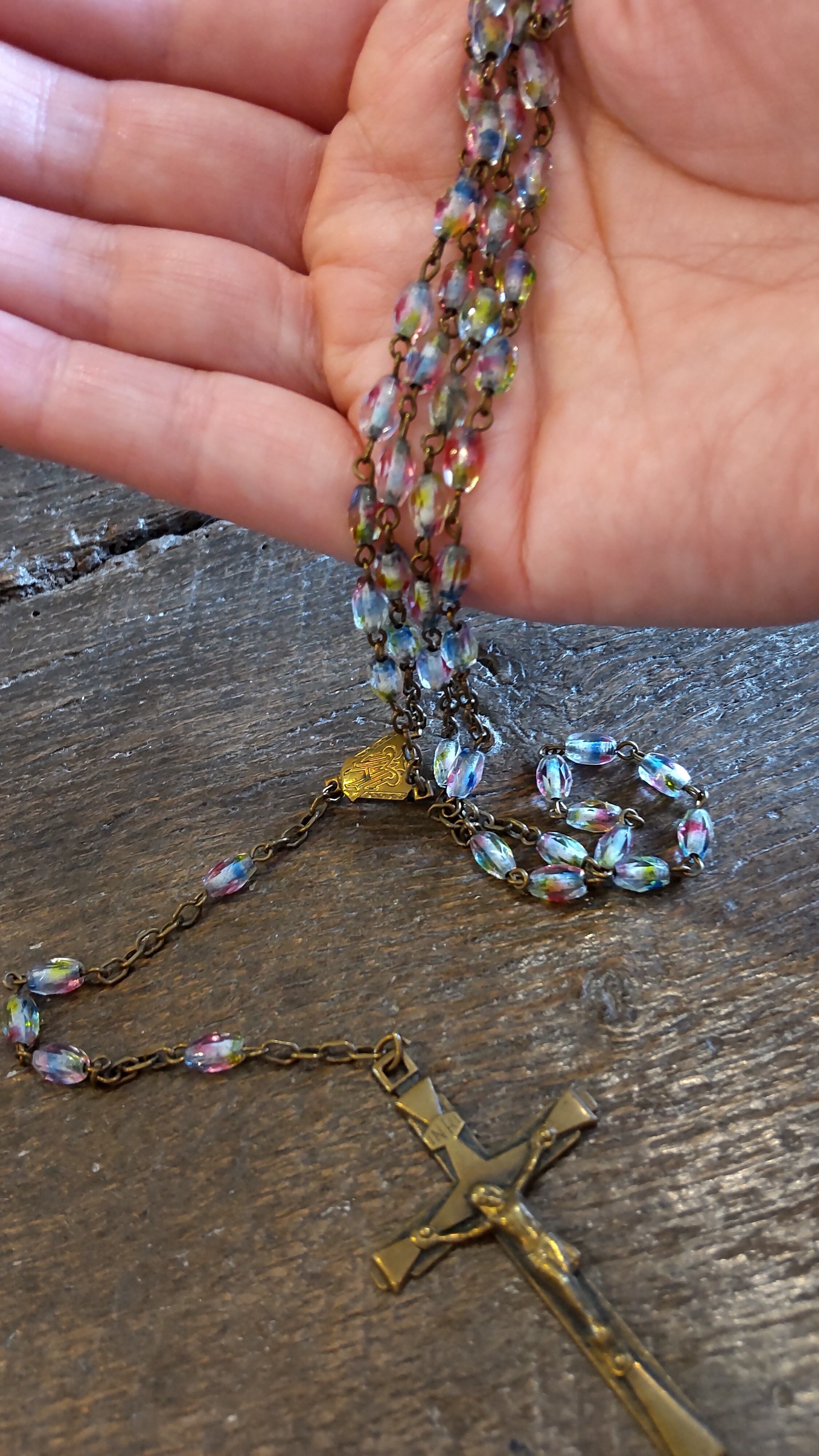 Antique rainbow glass rosary