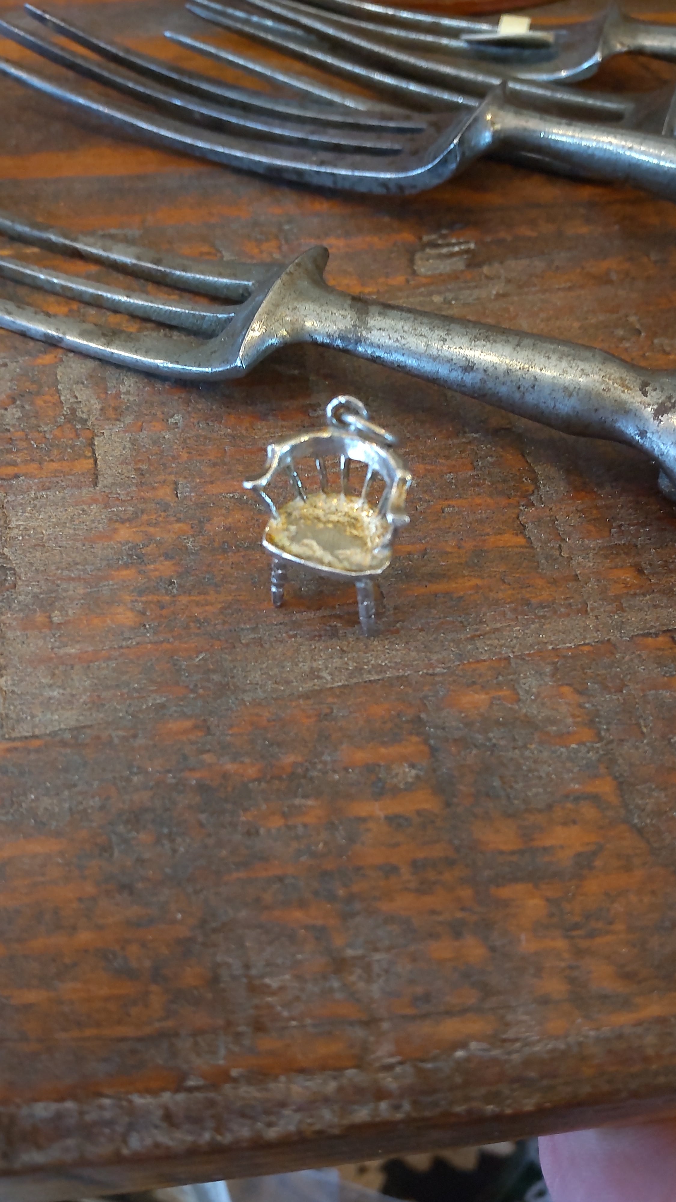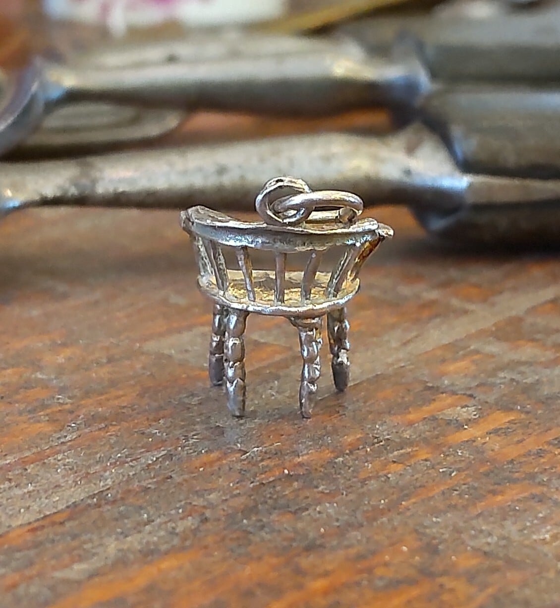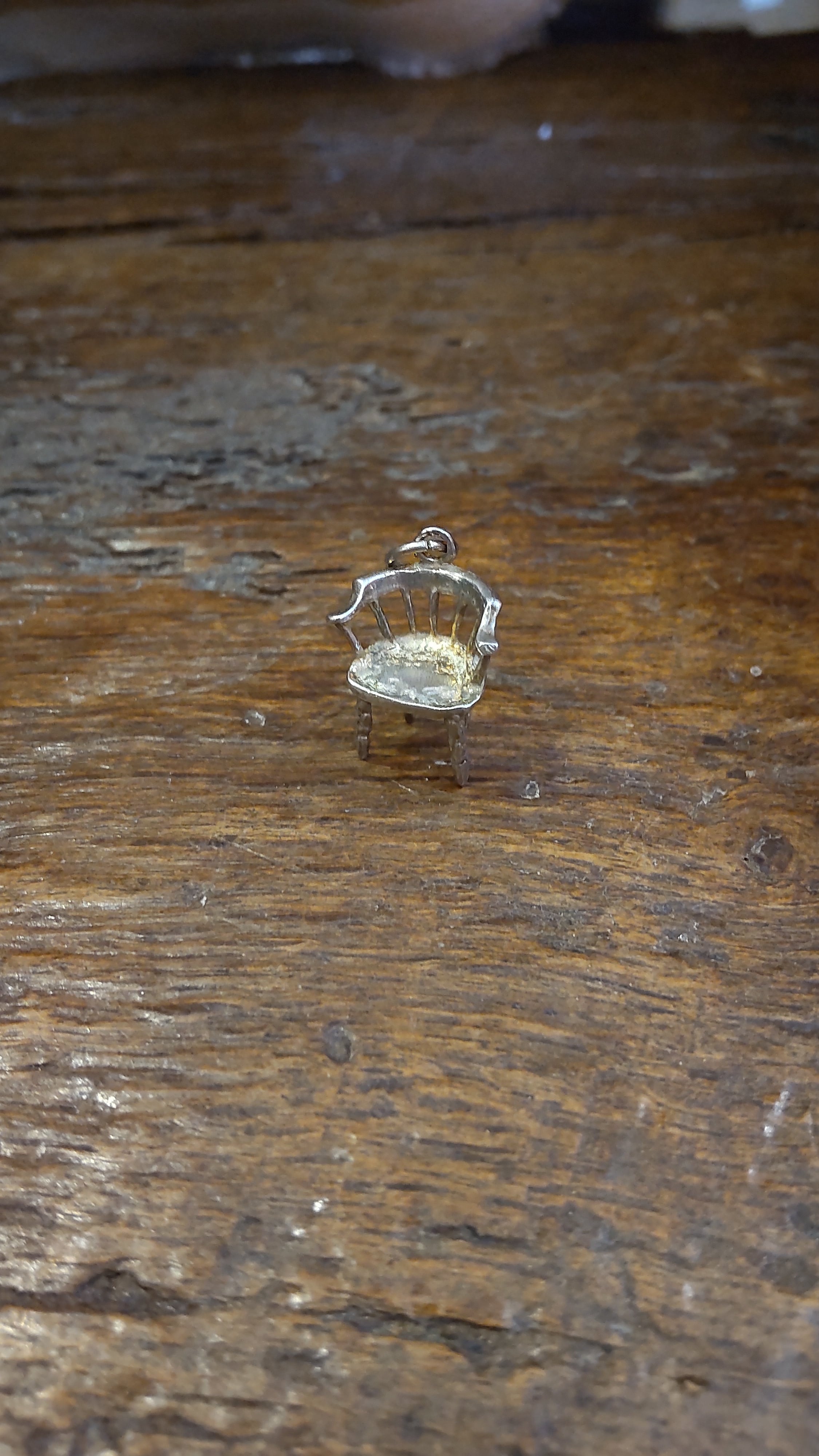椅子の形のイギリスヴィンテージシルバーチャームです。