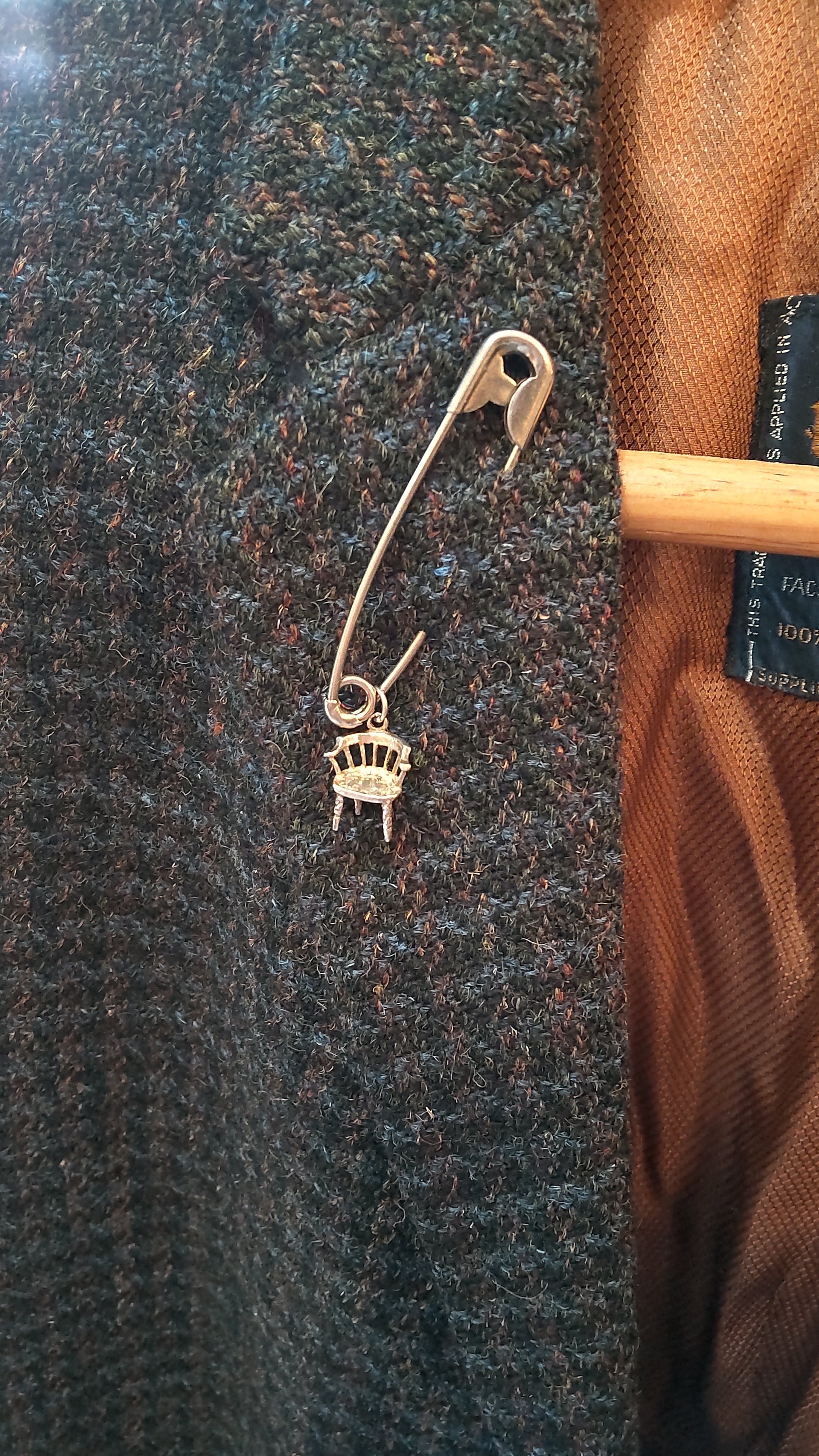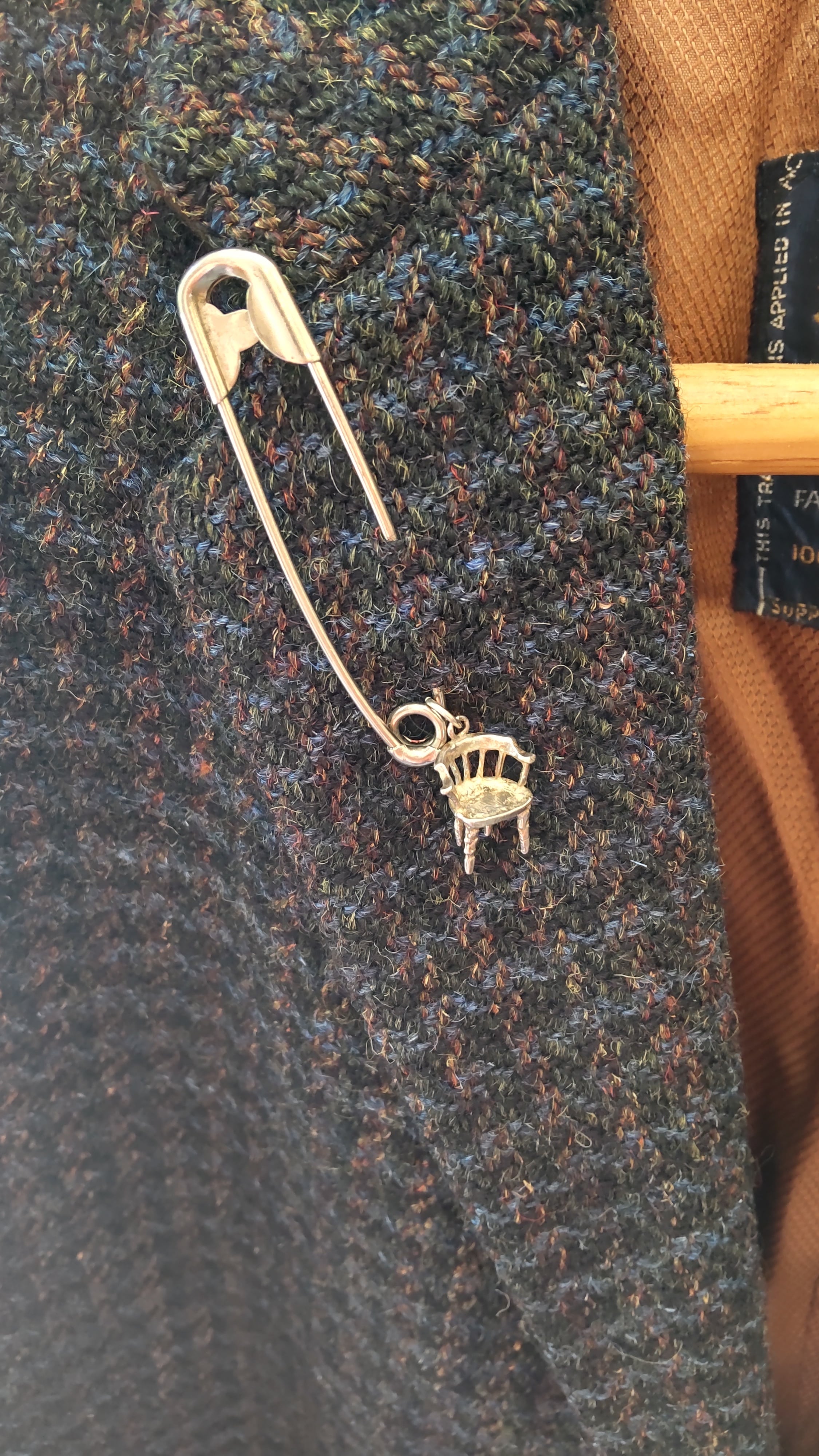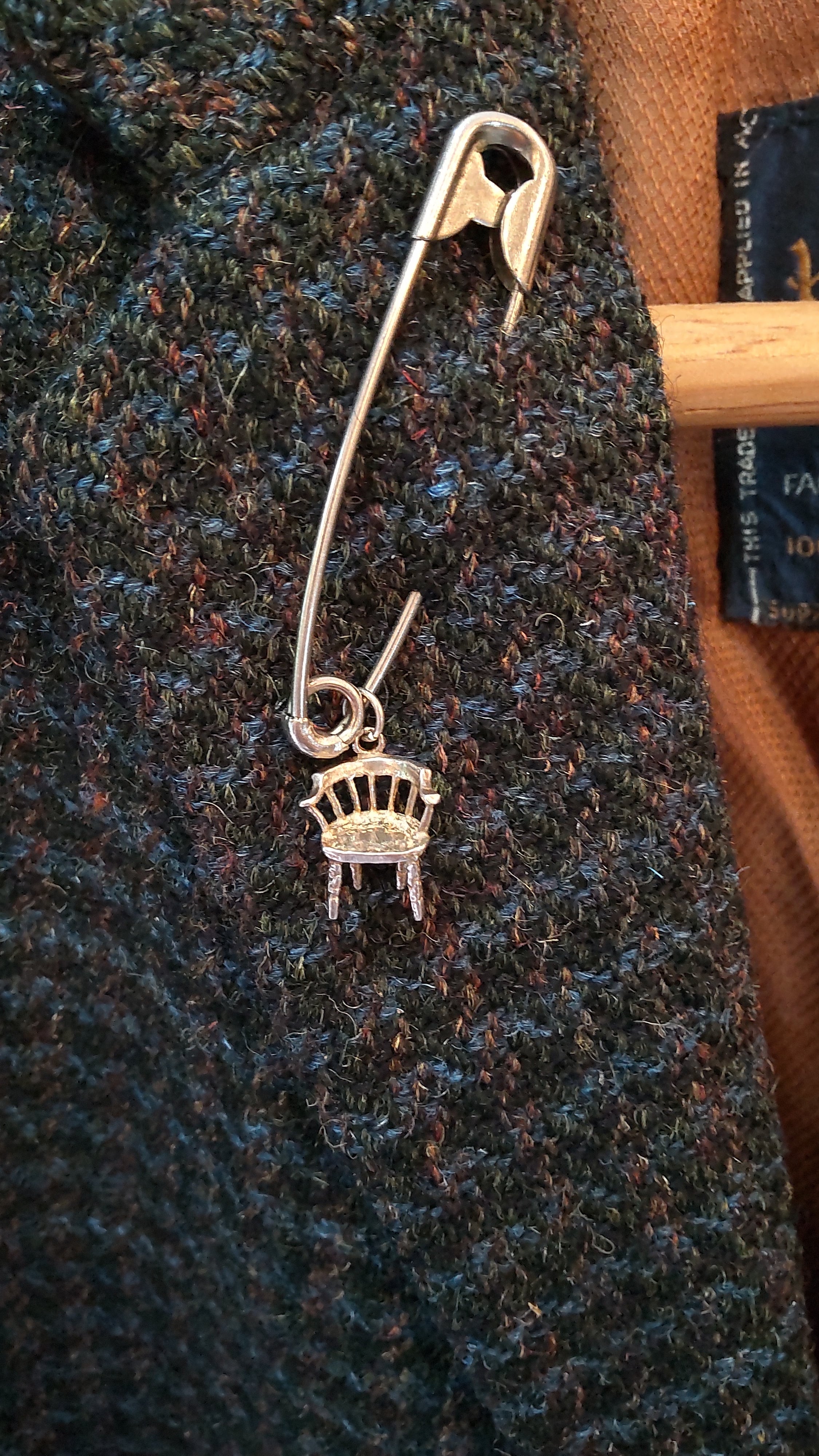 イギリスのヴィンテージの安全ピンで留めてみました。ご参考なまでに。