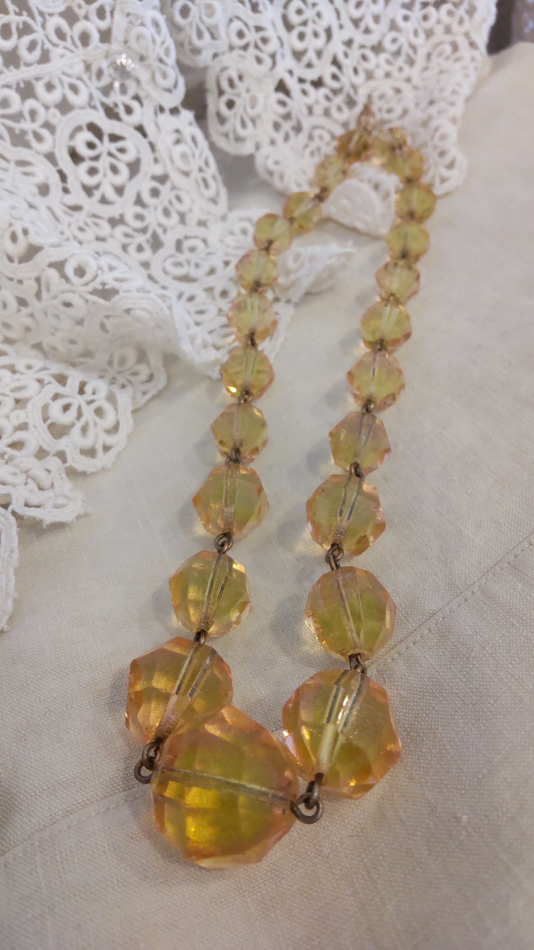所々角に細かいニブルと言う欠けが数カ所ありますが特に目立った欠けは無く100年位以前のネックレスなので写真でご確認下さいませ。