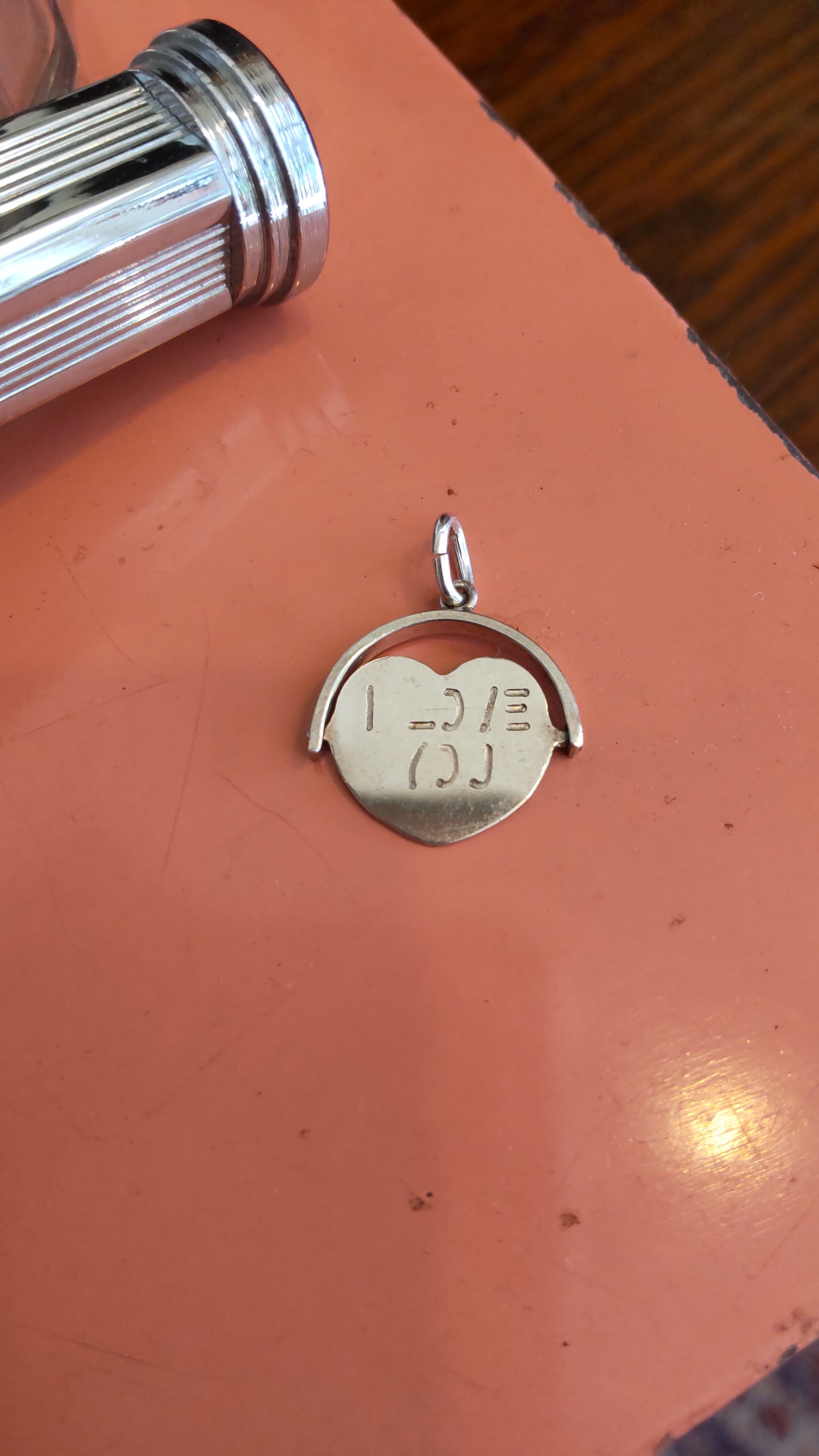 イギリスヴィンテージシルバーチャーム、隠れた愛のメッセージが込められたハート型のチャームです。