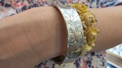 バングルの片面表面に葉っぱの模様が、葉と葉の間には細かい線が彫り込まれて居ます。