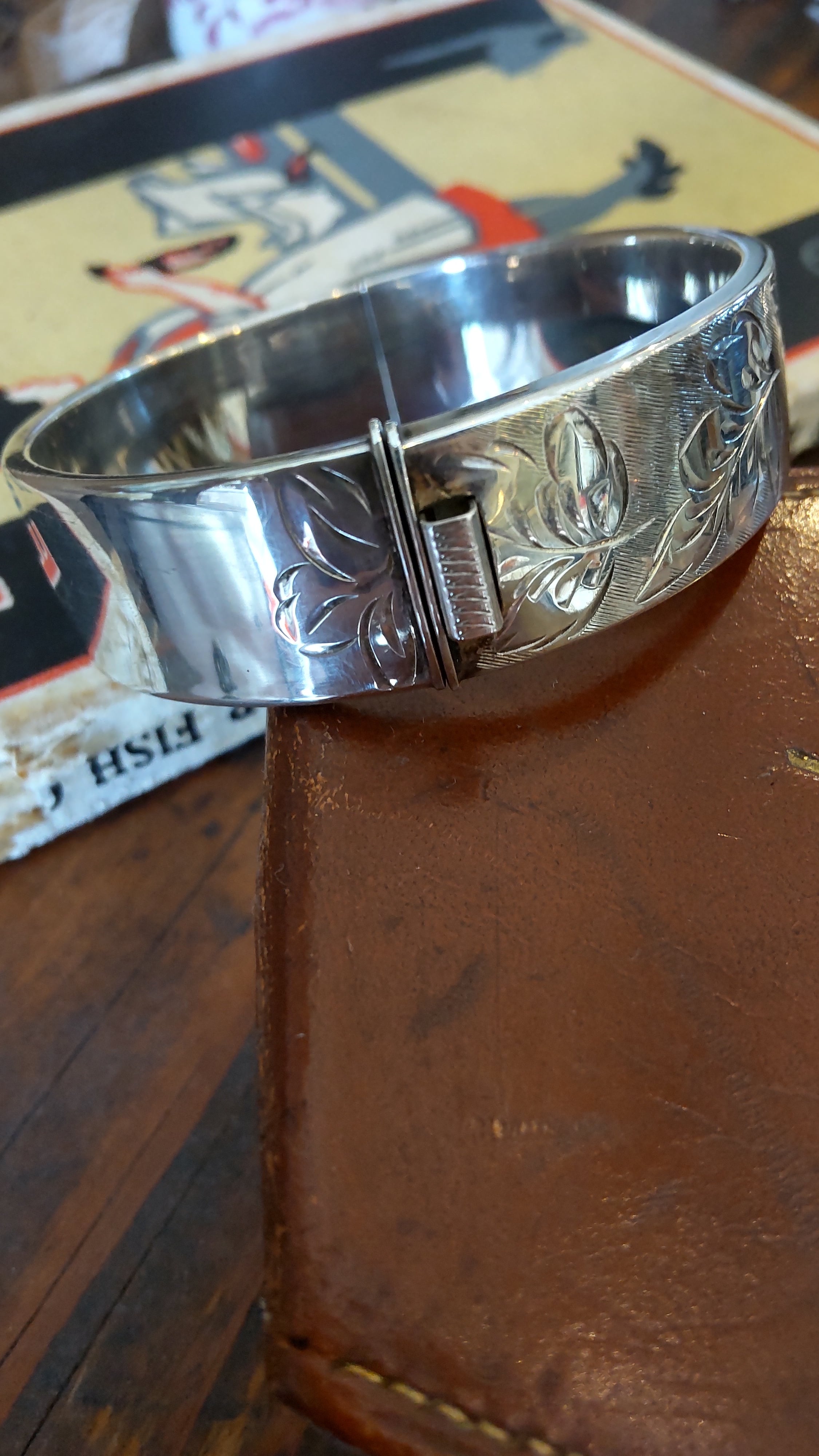 ヴィンテージ シルバーバングル リーフ柄1963年刻印