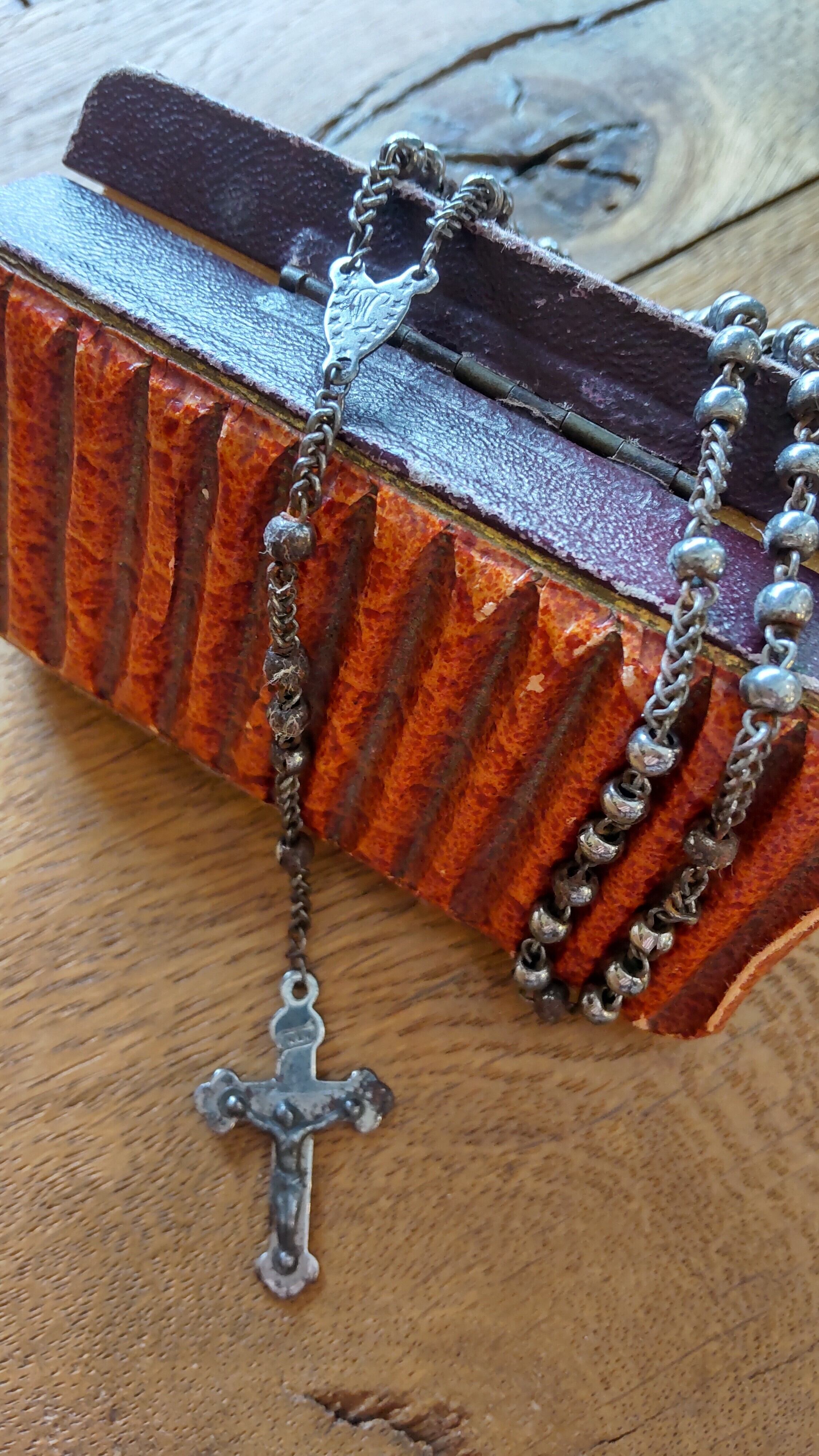 1800年代の後半のフランス製で英国で使用されていたロザリオだと思われます。