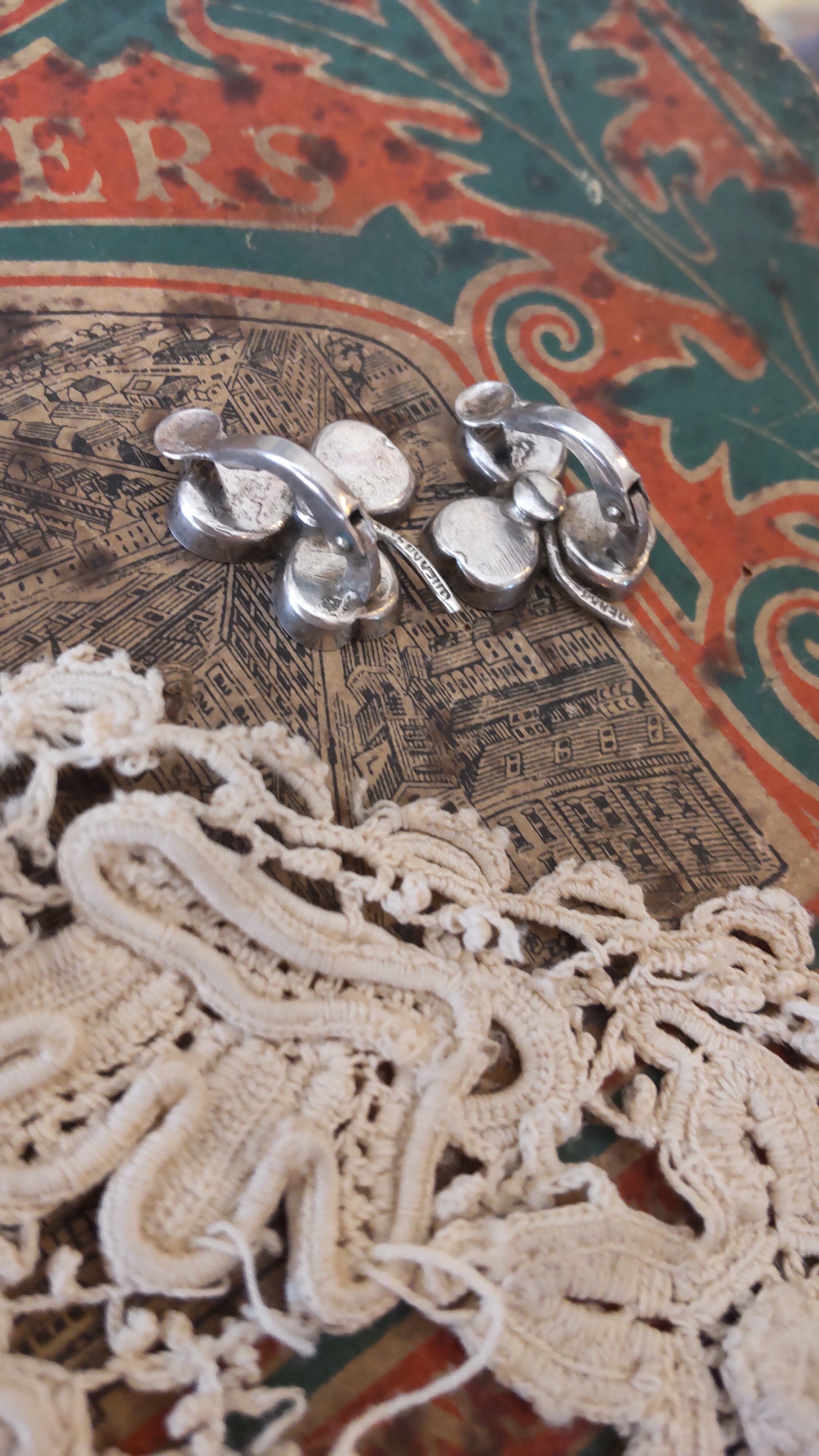 ヴィンテージ シルバーシャムロックイヤリング コネマラマーブル