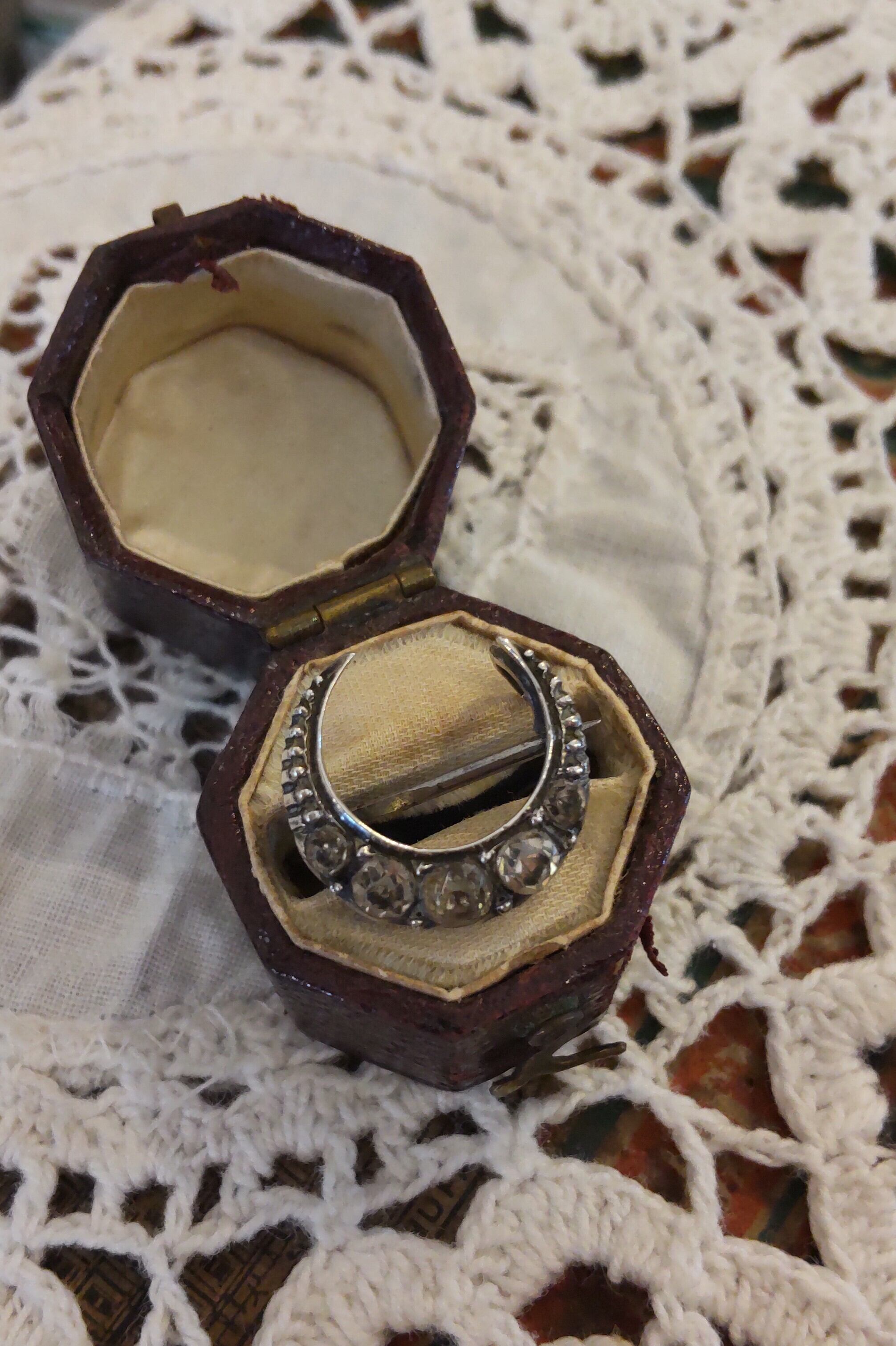 ヴィクトリアン小さなシルバークレッセントペーストブローチ