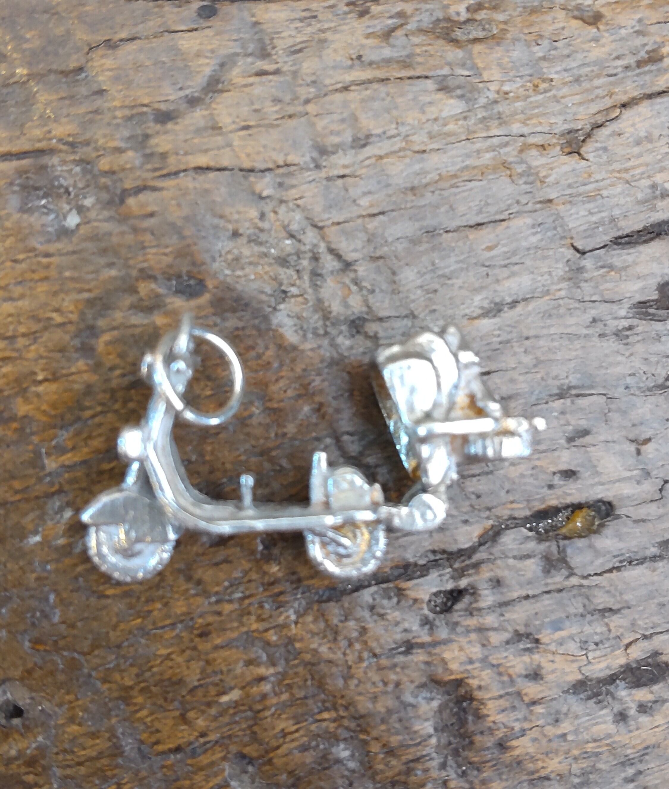 1970年代頃モッズの影響のイギリスヴィンテージシルバースクーター型、シートのところが開閉式のシルバーチャームです。