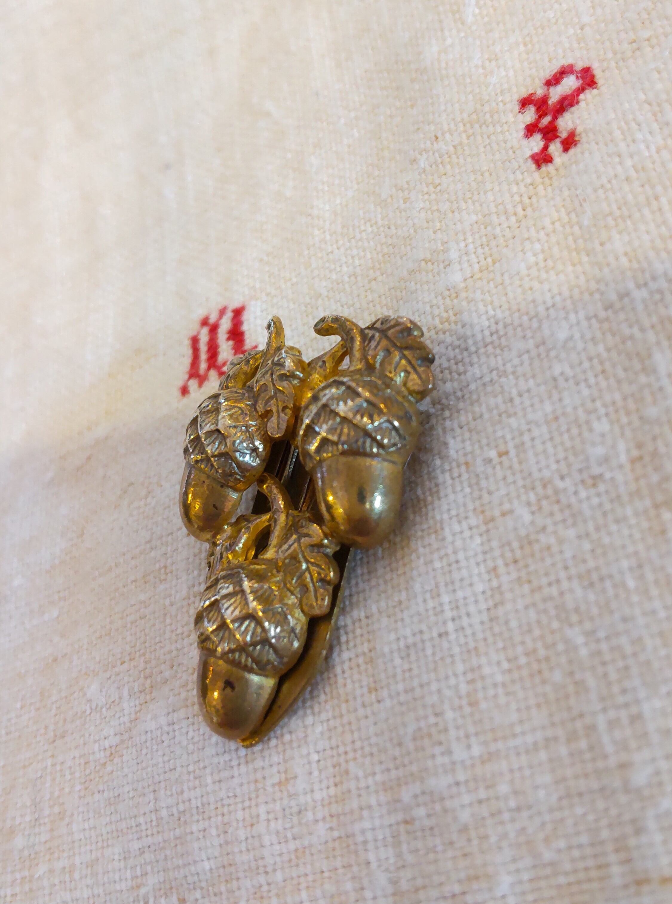 1920〜30年代頃どんぐりのデザインヴィンテージドレスクリップ オーク、エイコーン