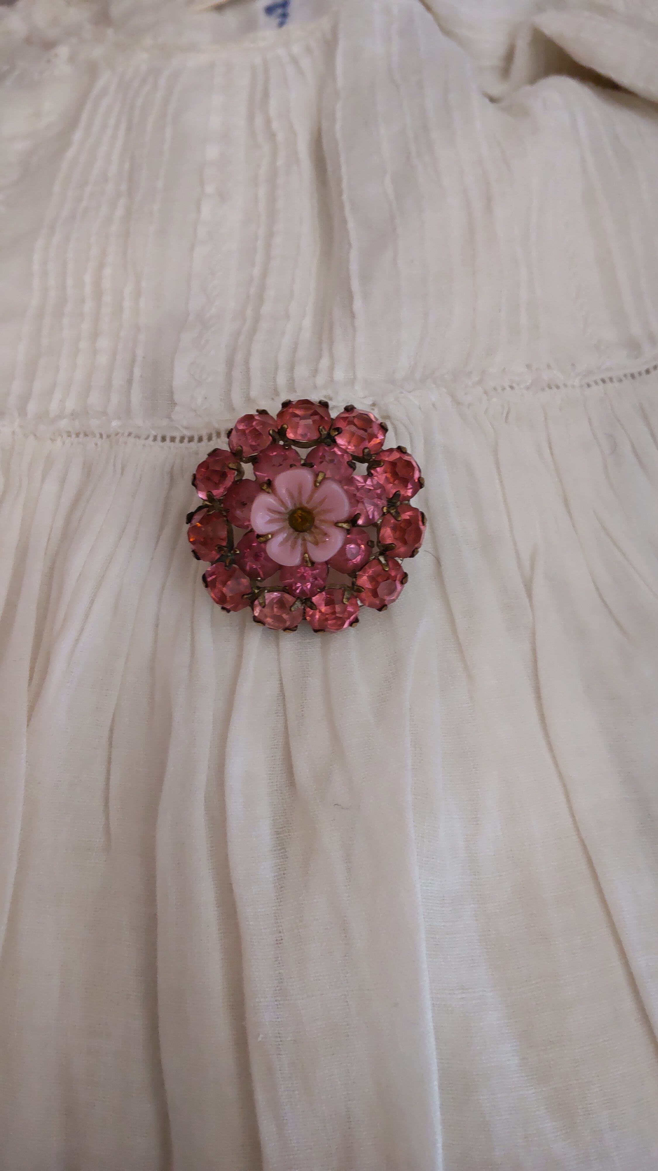 1920年代〜30年代頃ヴィンテージチェコピンクフラワー硝子ブローチ