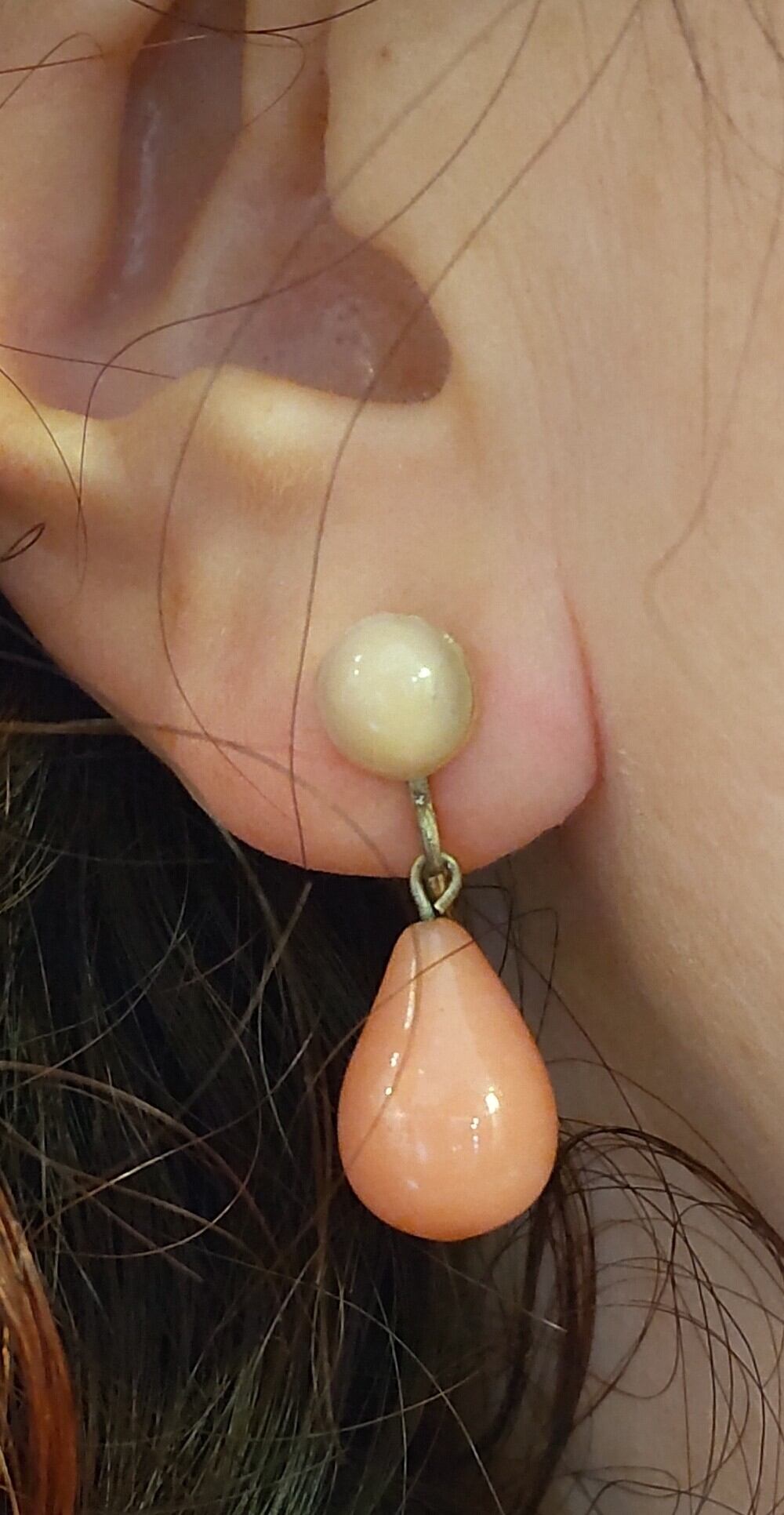 1950年代頃かそれ以前の硝子のヴィンテージスクリュータイプのイヤリングです。