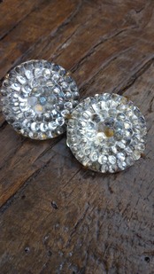 ヴィンテージ大振りミラーバックつぶつぶ硝子のイヤリング