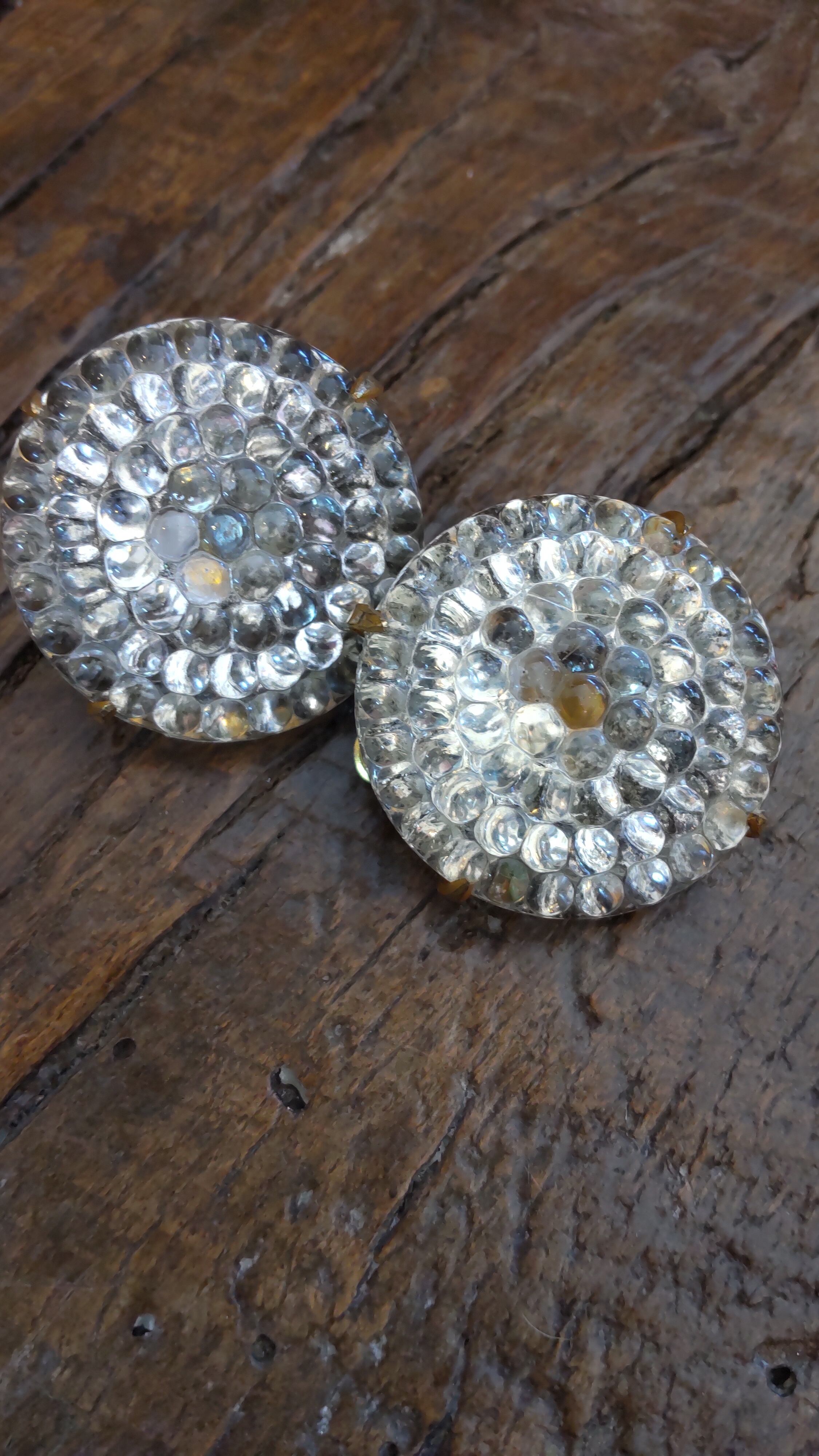 時代はこのような加工の硝子のボタンが30年代頃かそれ以前からありますが金属の金具の状態もとても良くて綺麗なので30年代〜50年代頃のヴィンテージのイヤリングだと思います。