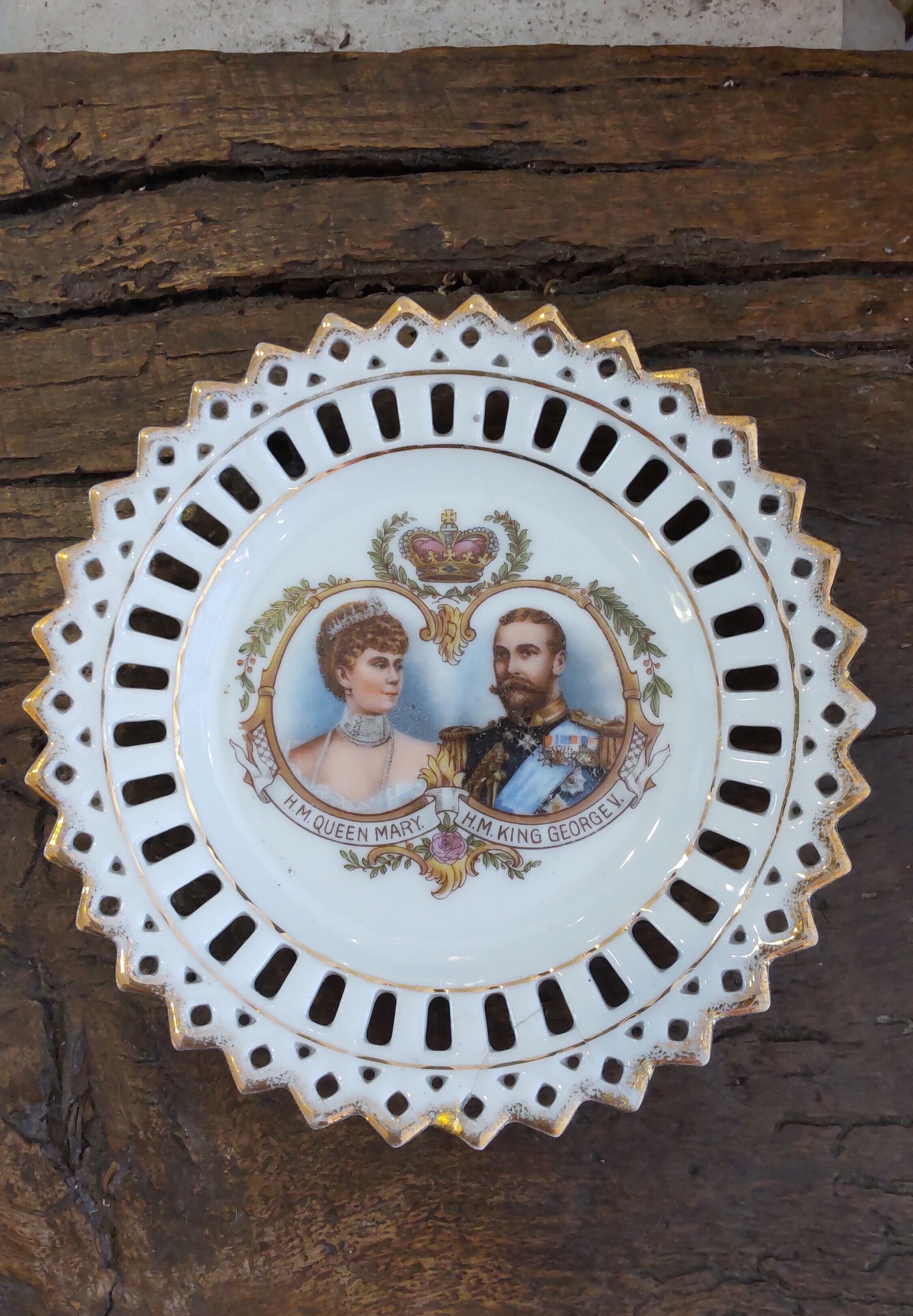 英国キングジョージ5世とクイーンメアリーの絵柄の壁飾用セラミックプレートです。