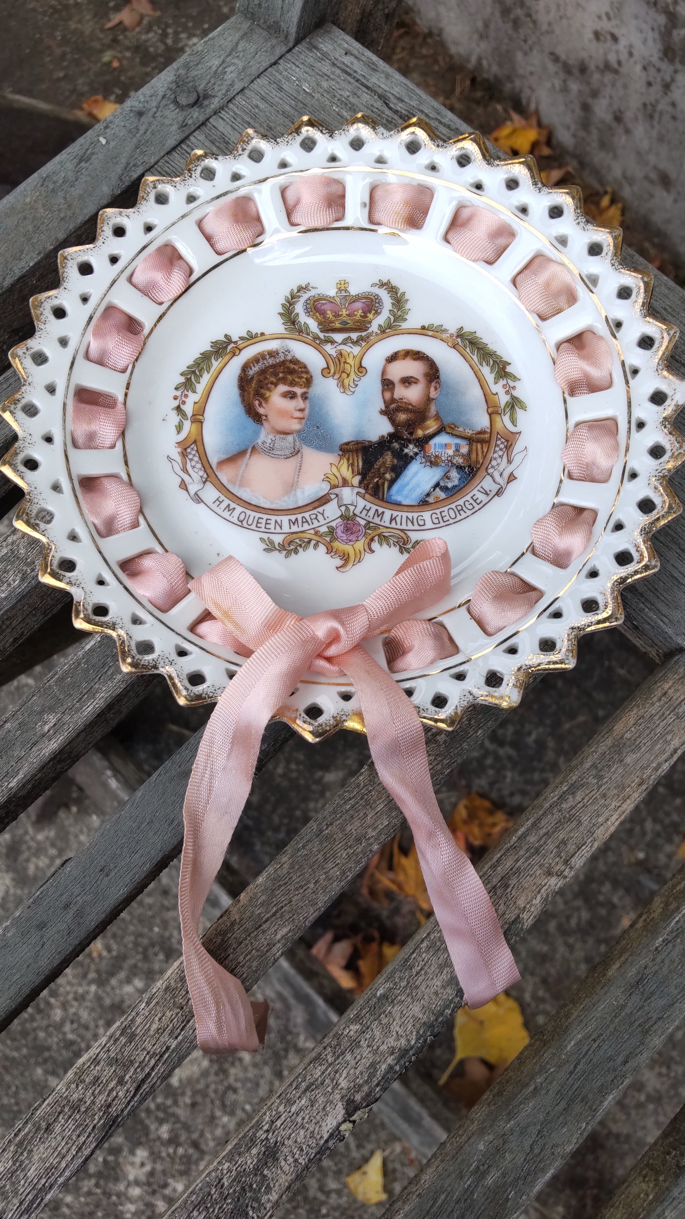 1911年ジョージ5世とメアリー戴冠式記念 リボン飾プレート