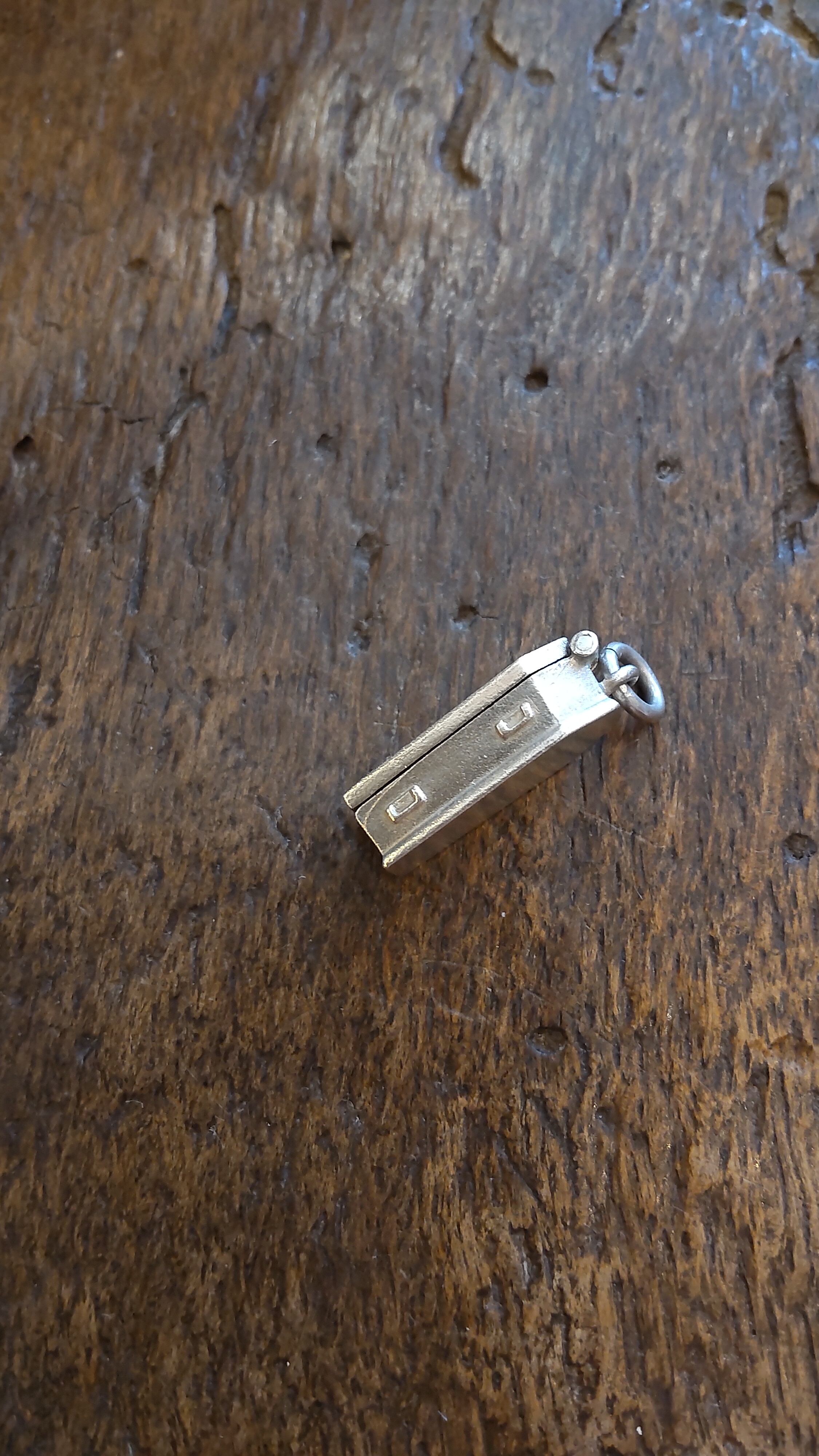 イギリスのヴィンテージのシルバーチャーム、とても珍しい物で、棺桶と骸骨のモチーフです。