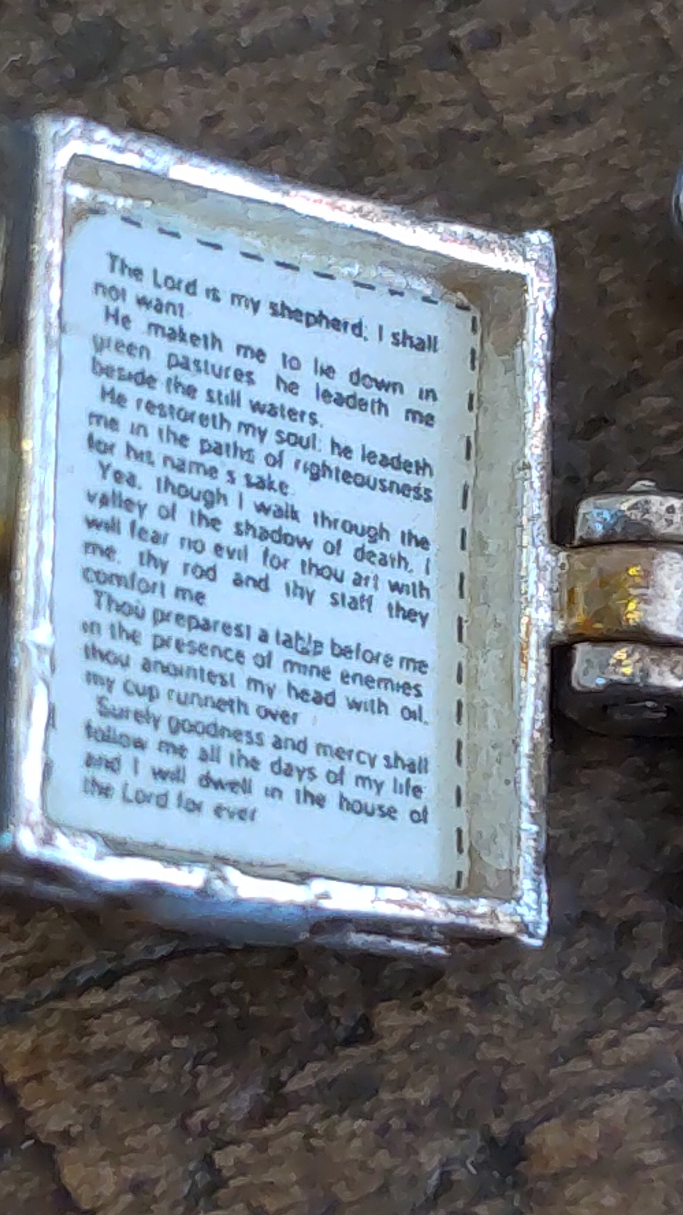 サイズ 聖書自体11x11mm、ヒンジ、フック込み約14x14mm