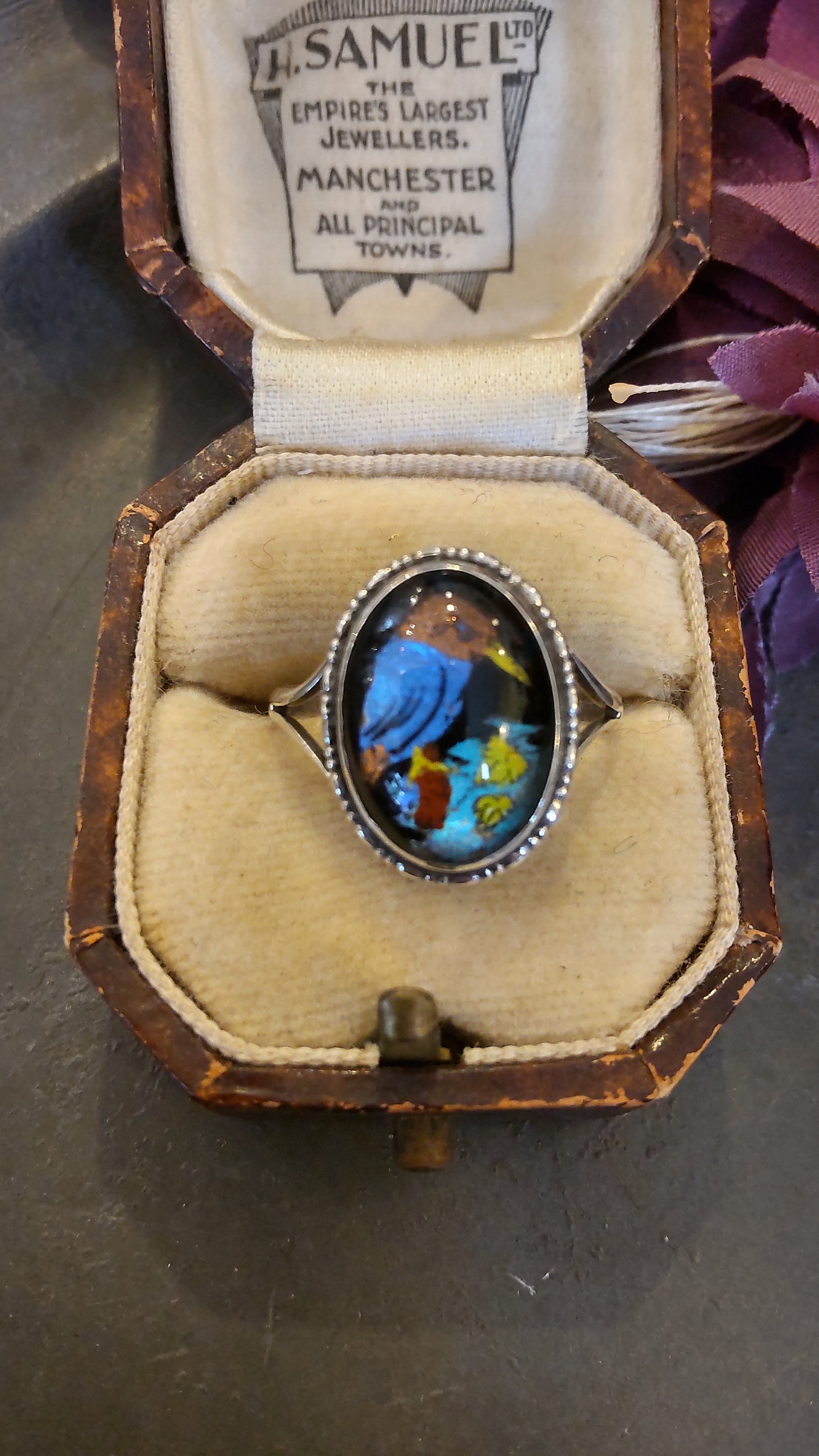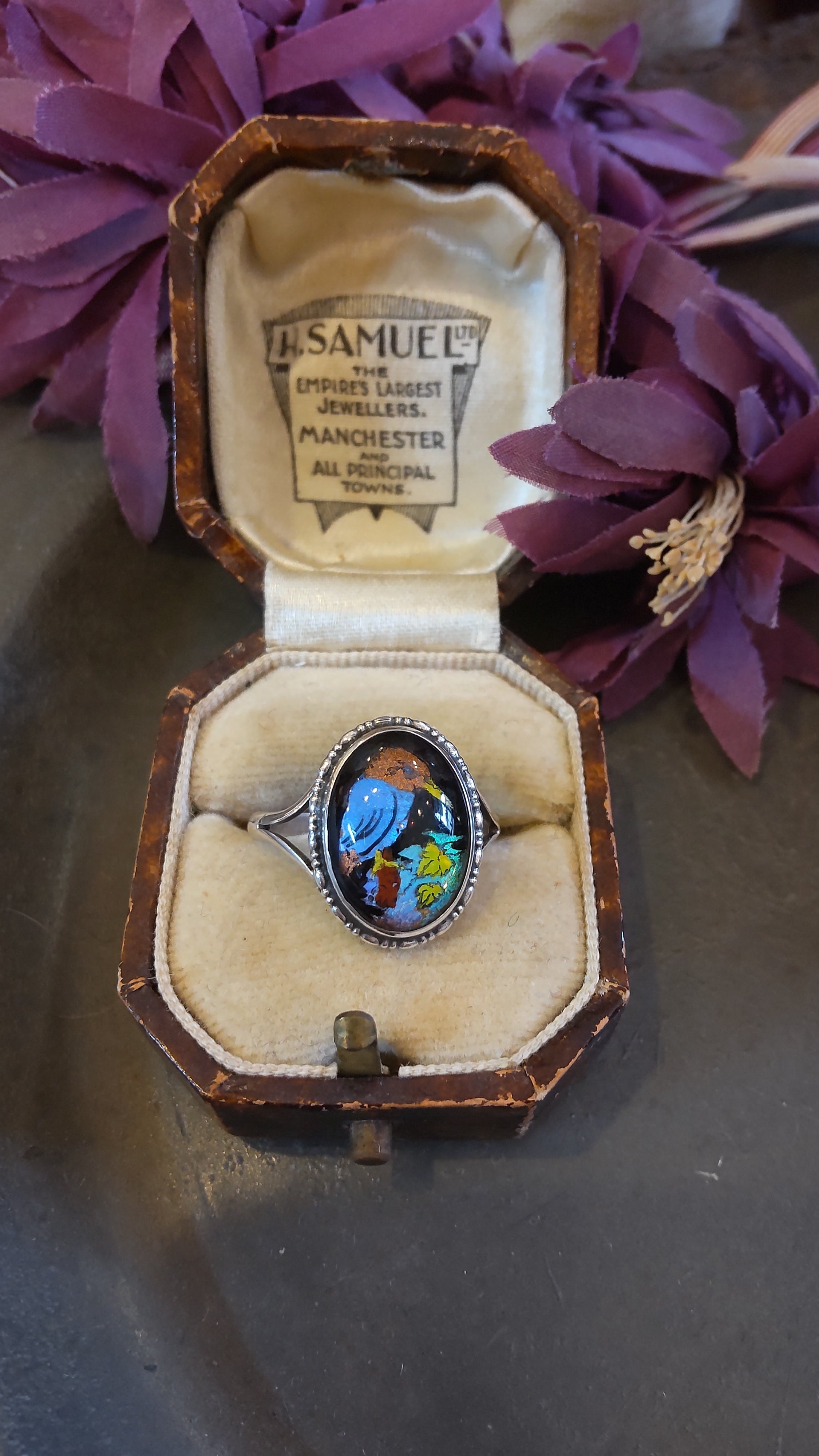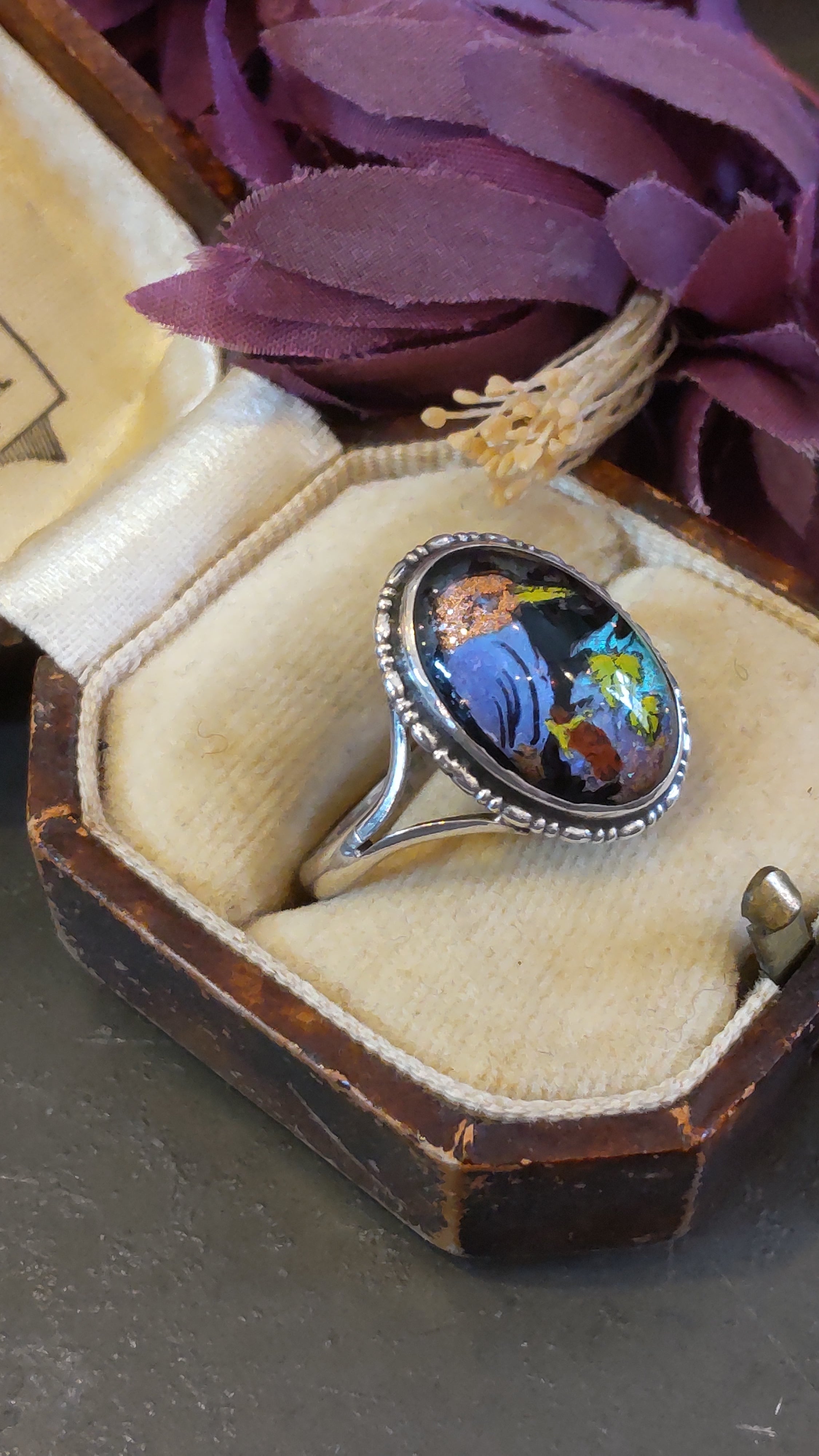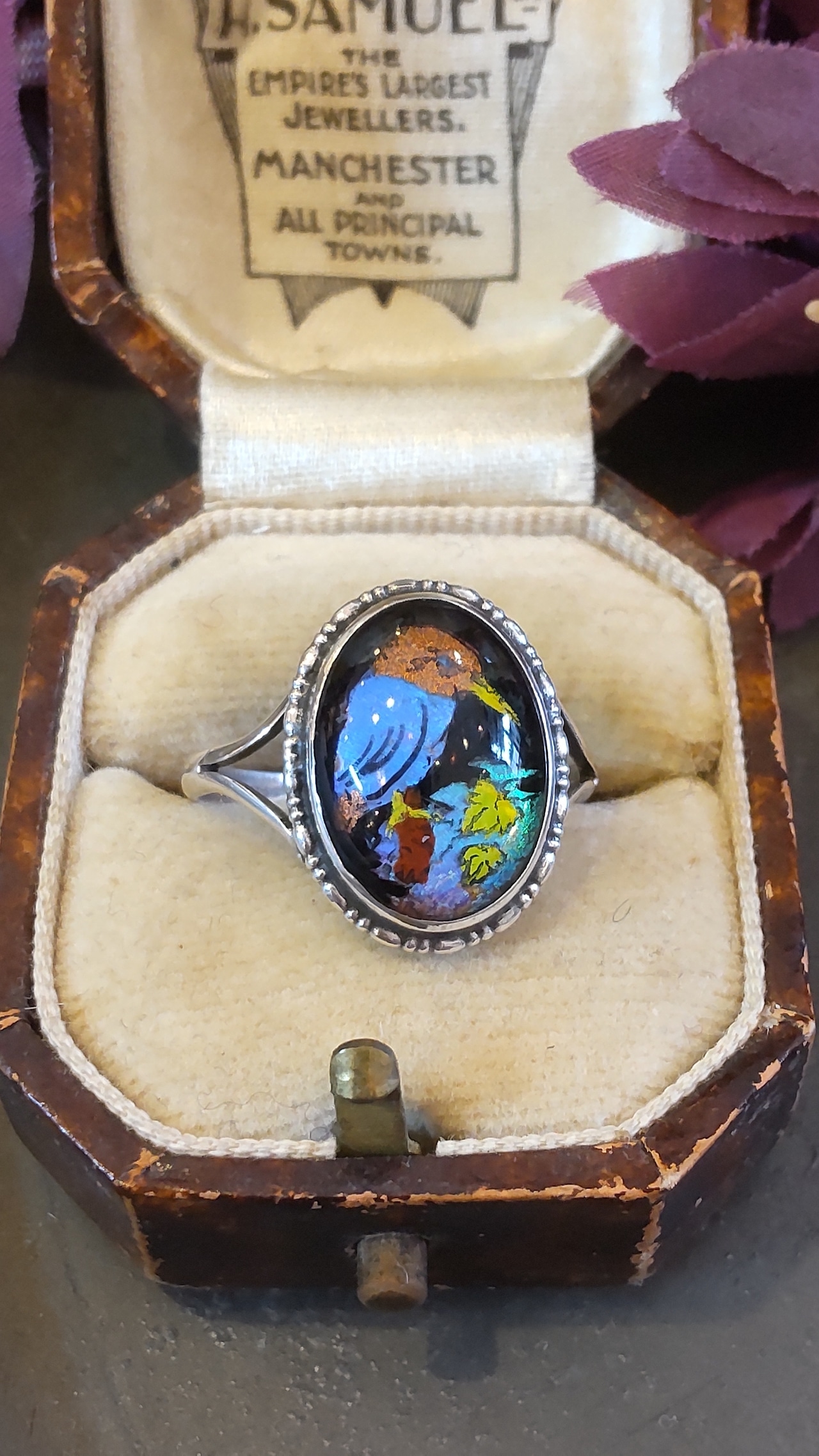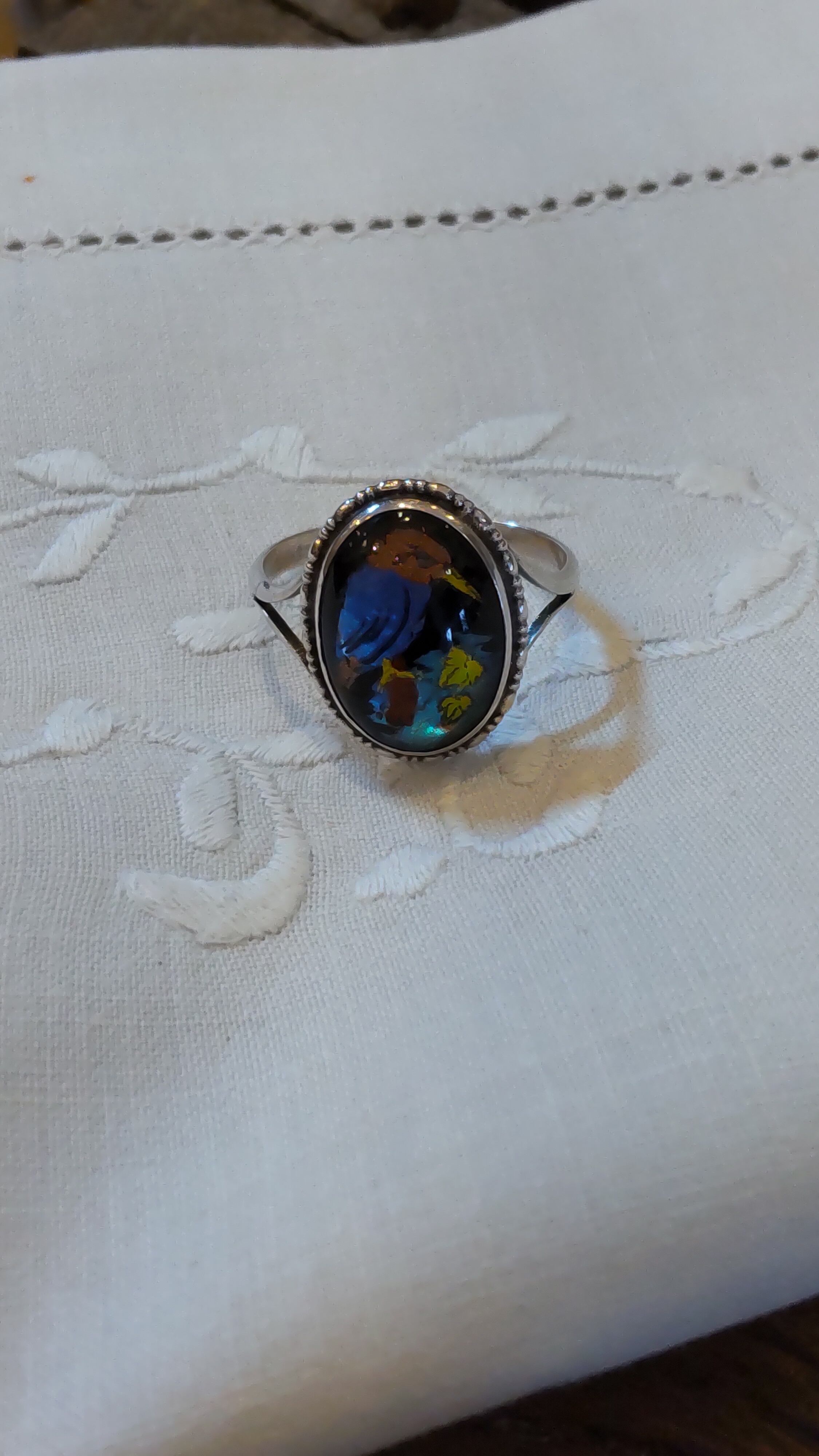 1920年代カワセミの絵のモルフォ蝶シルバーリングです。