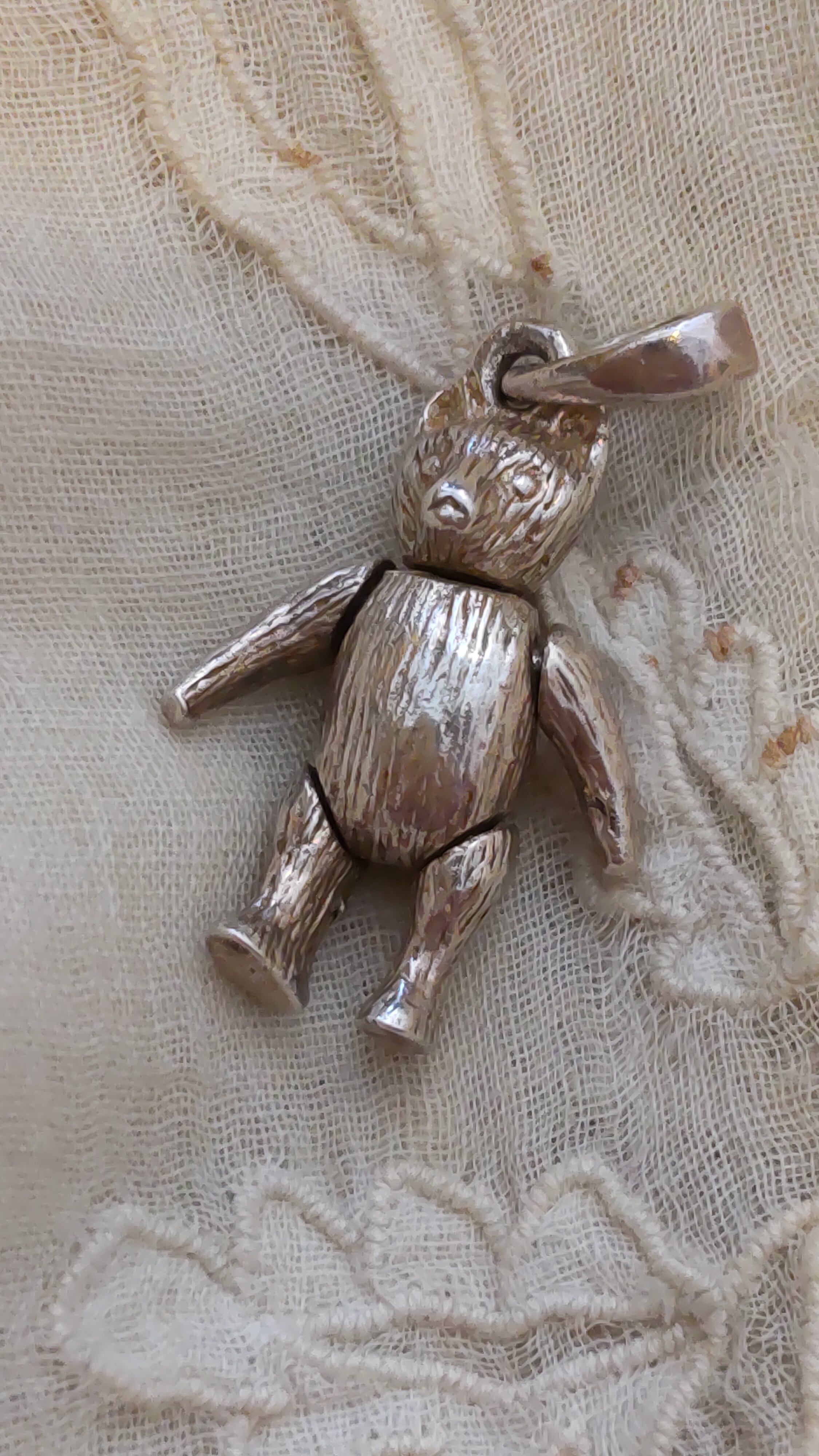 こちらは恐らく80年代か90年代頃の物だと思いますが、自由自在に頭部や手足が動く、しっかりとした作りの銀製のペンダントです。