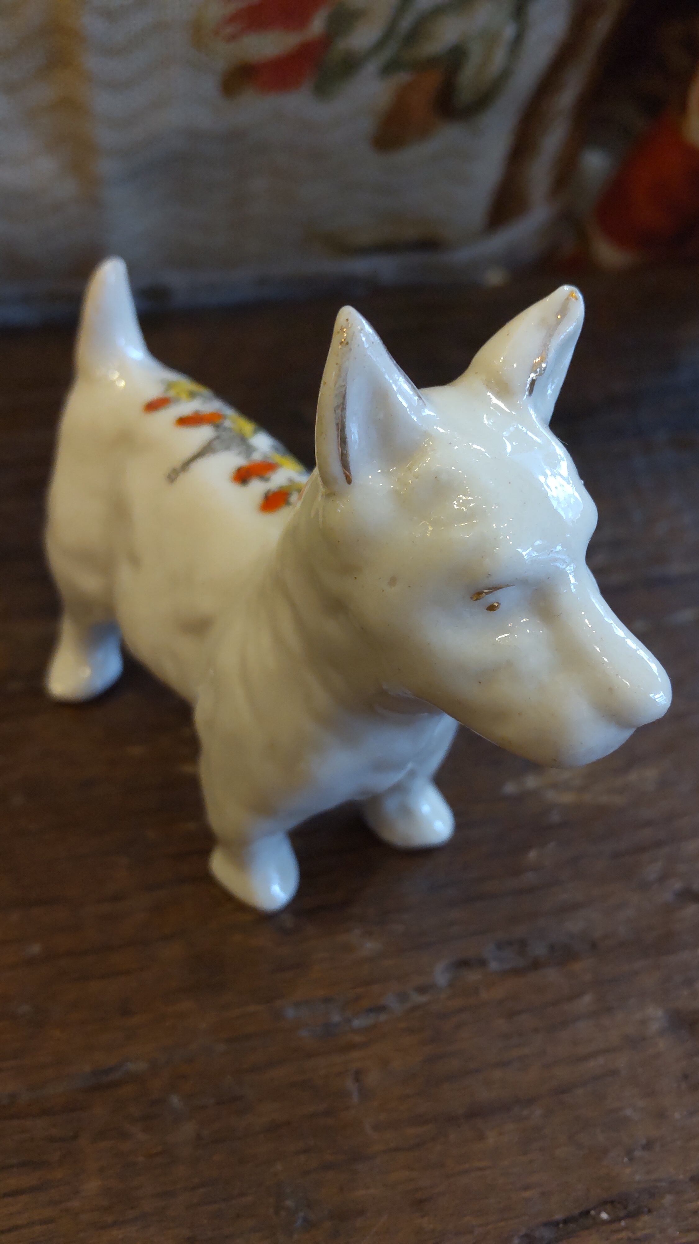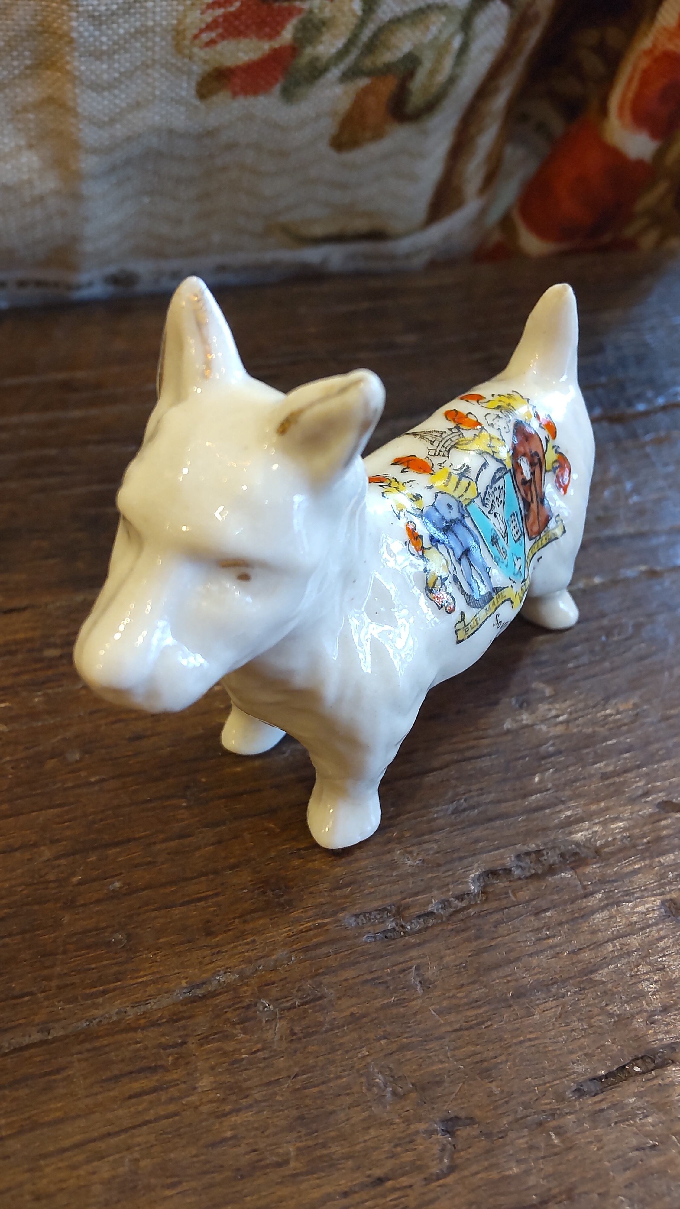 イギリス1920年代から30年代頃の陶器の旅先のお土産品で、スコティッシュテリアか、ウエスティーテリアの形をしています。