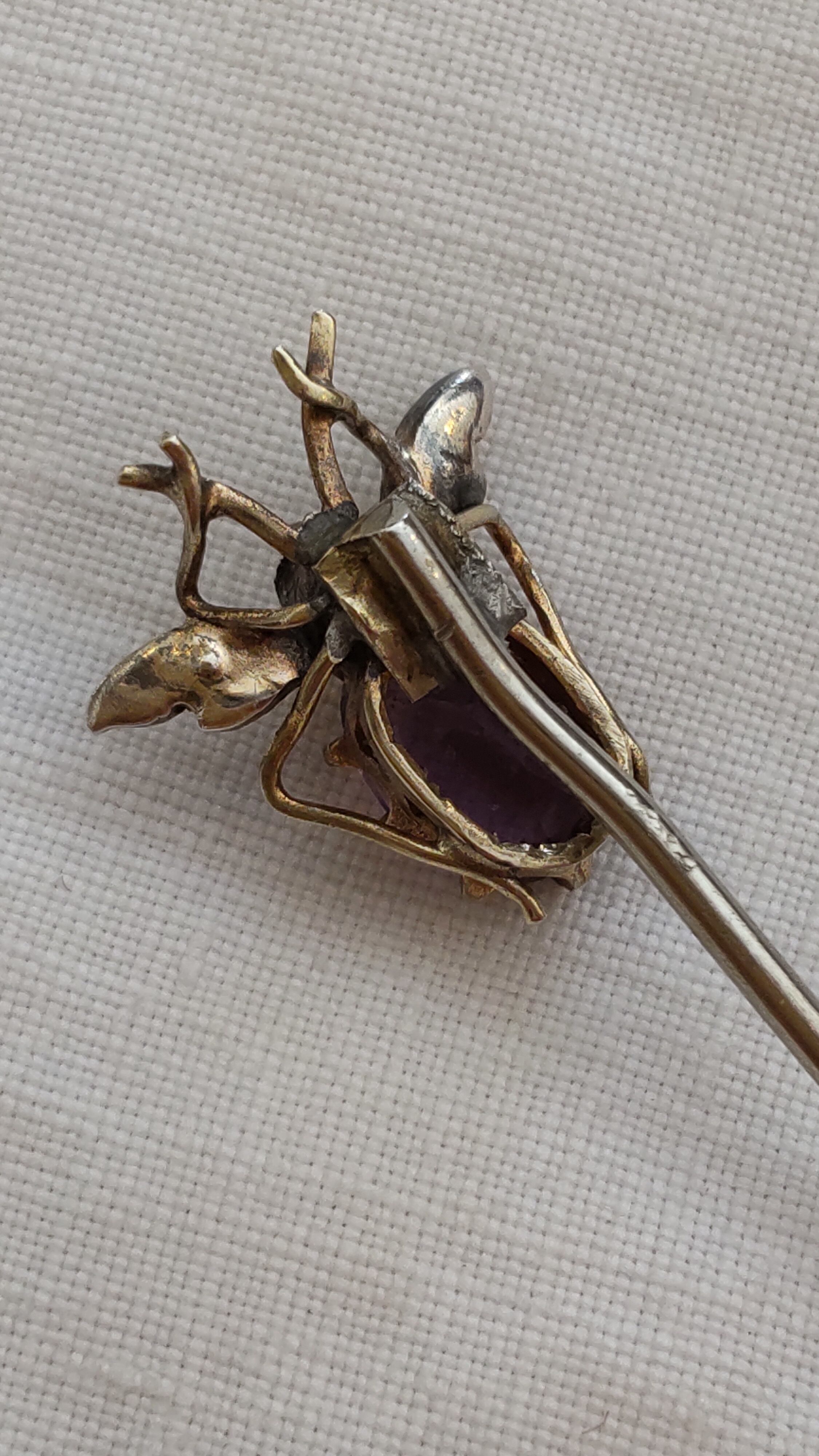 アメジストとシードパールの虫の形アンテークラペルピン