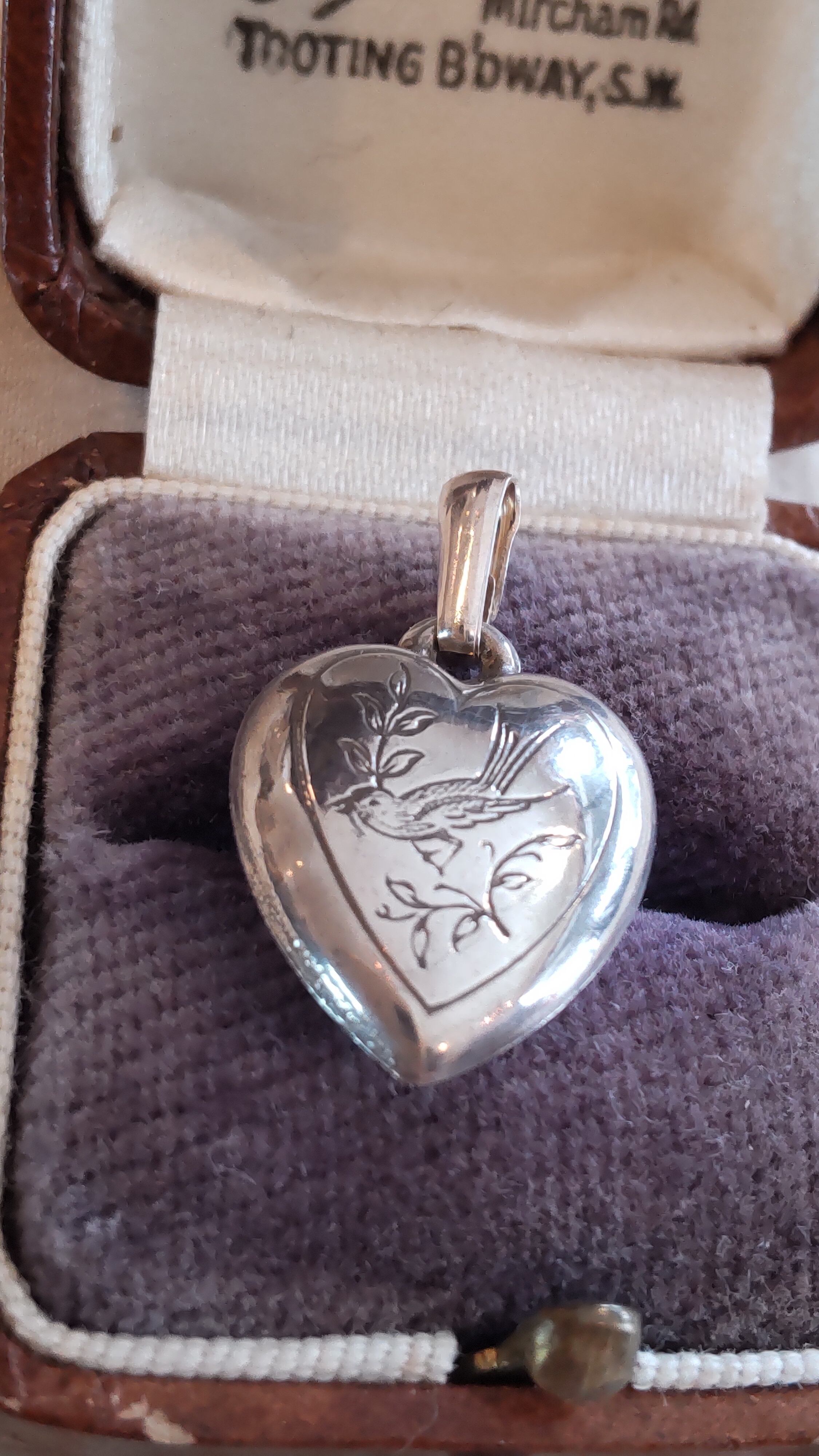イギリスヴィンテージシルバー 鳥の柄のハート型のペンダント チャーム