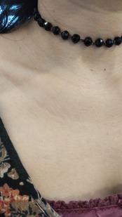 長さは約34cmなのでチョーカーにするにはちょっと短いので何かで足して長さを出すとネックレスとしてもお使いいただけると思います。
