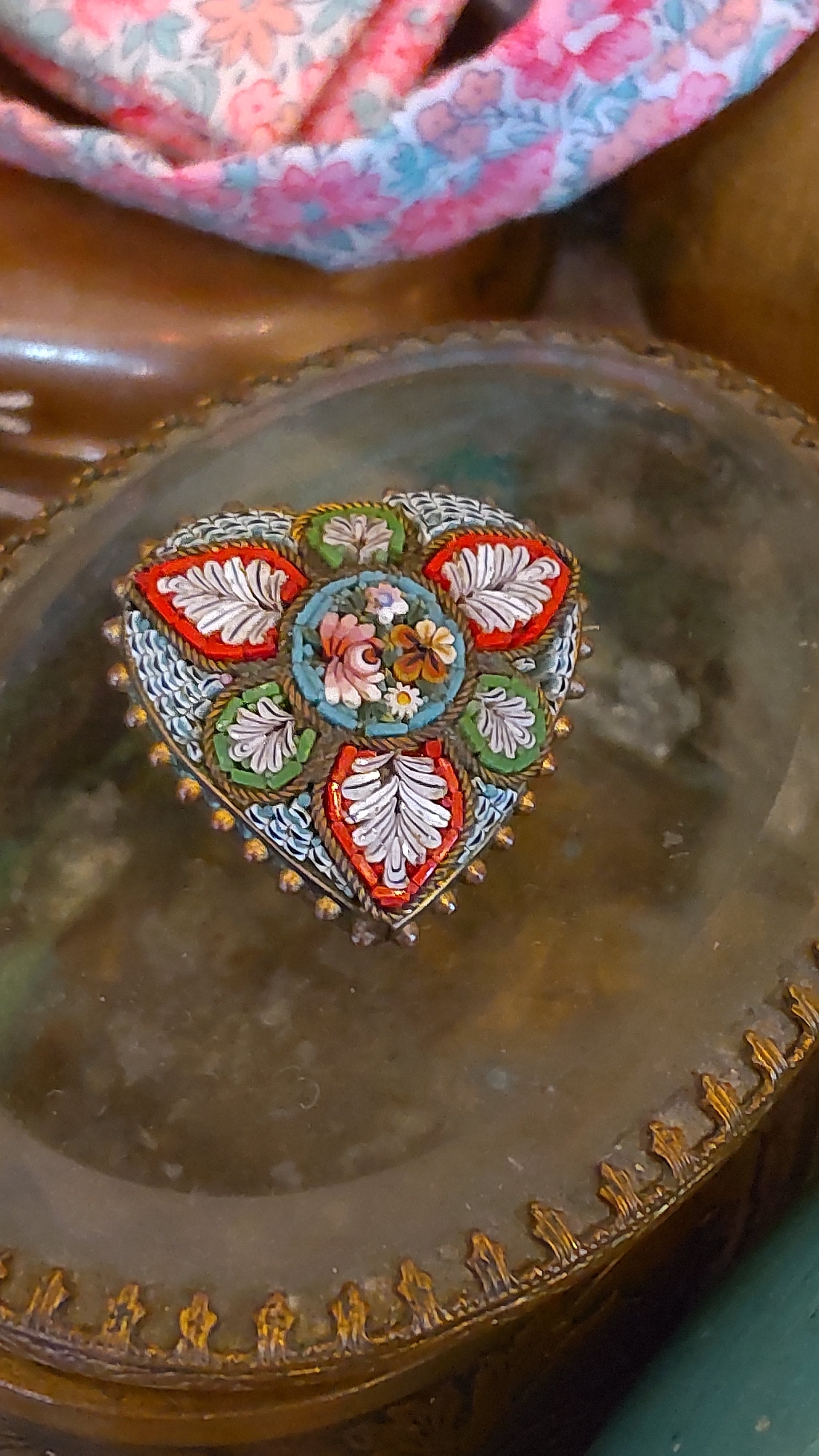 ヴィクトリアン〜エドワーディアン頃のアンティークの落ち着いた可愛い色合いのハート形のイタリアン マイクロモザイクブローチです。
