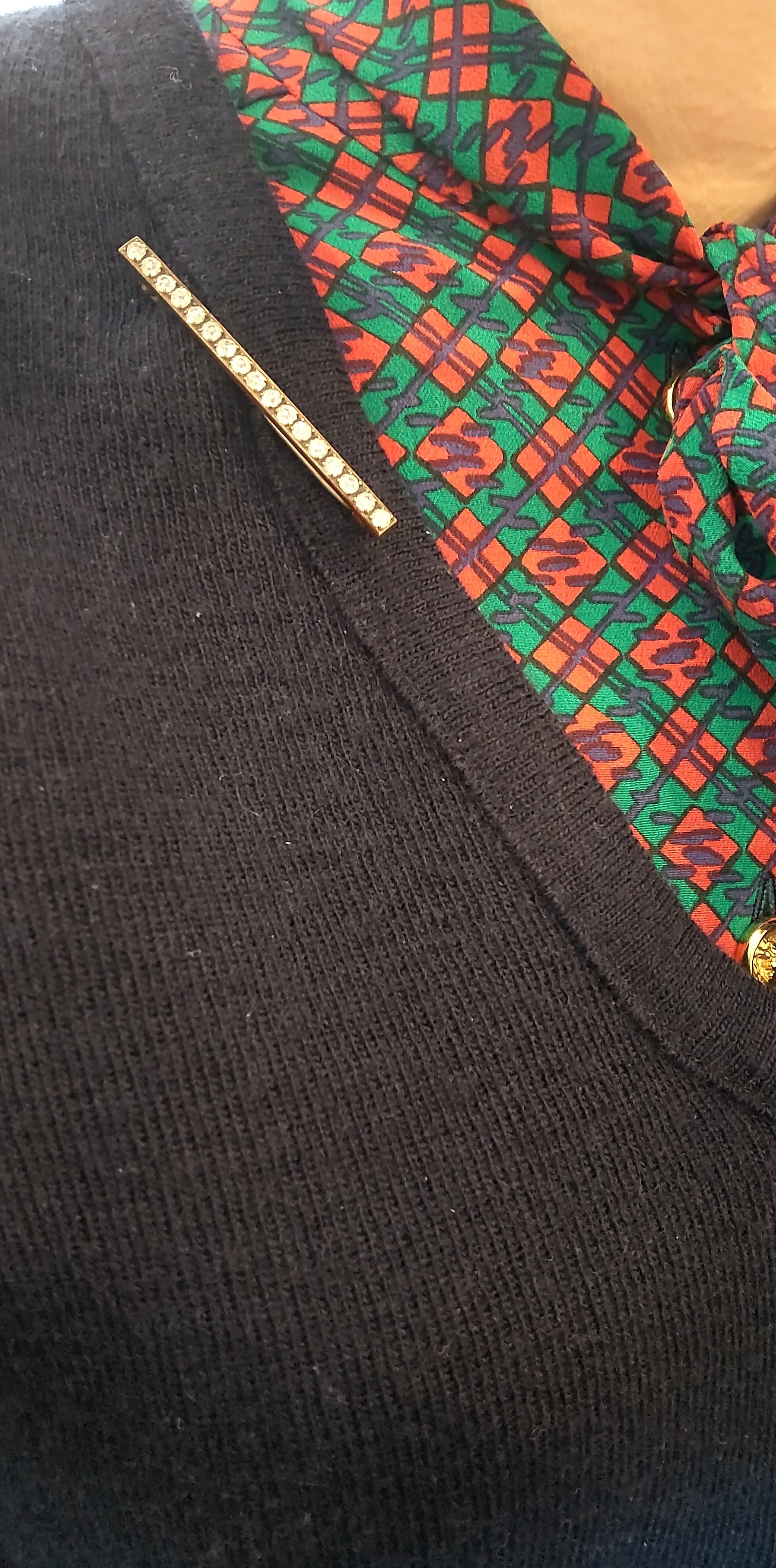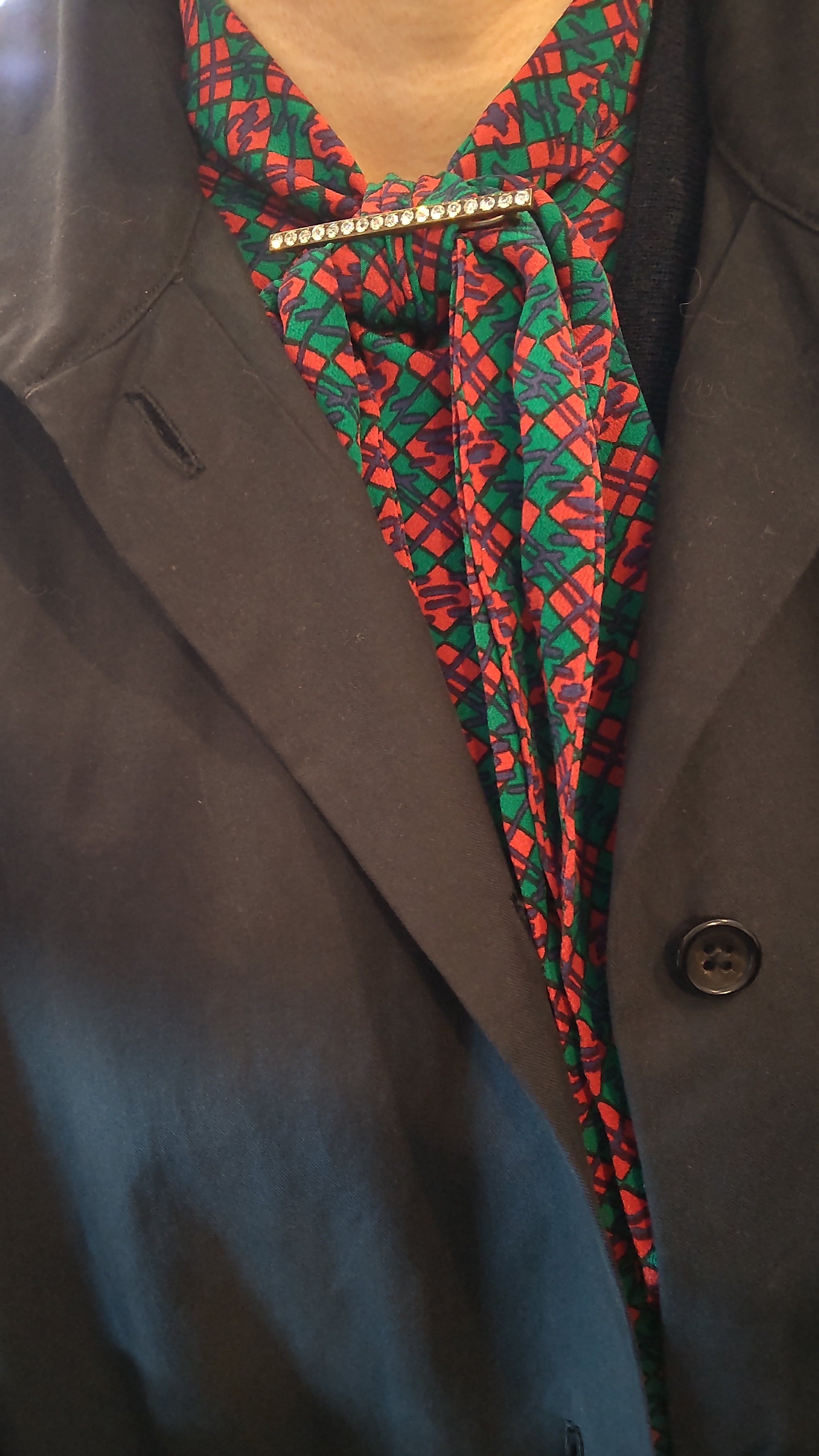針は若干太めなのでざっくり織りのウールのジャケットやニットセーター、ショールネクタイ等に良さそうです。