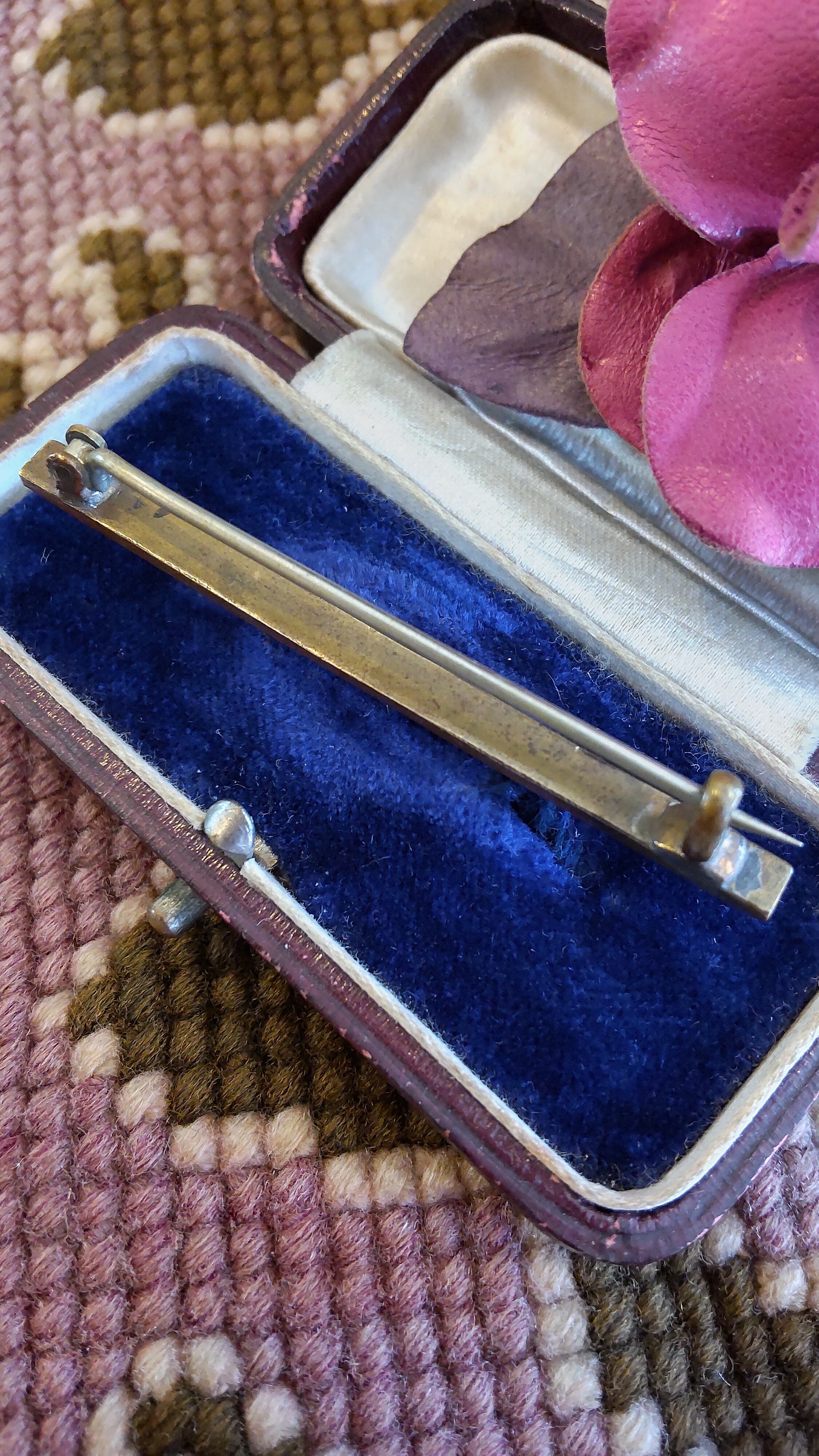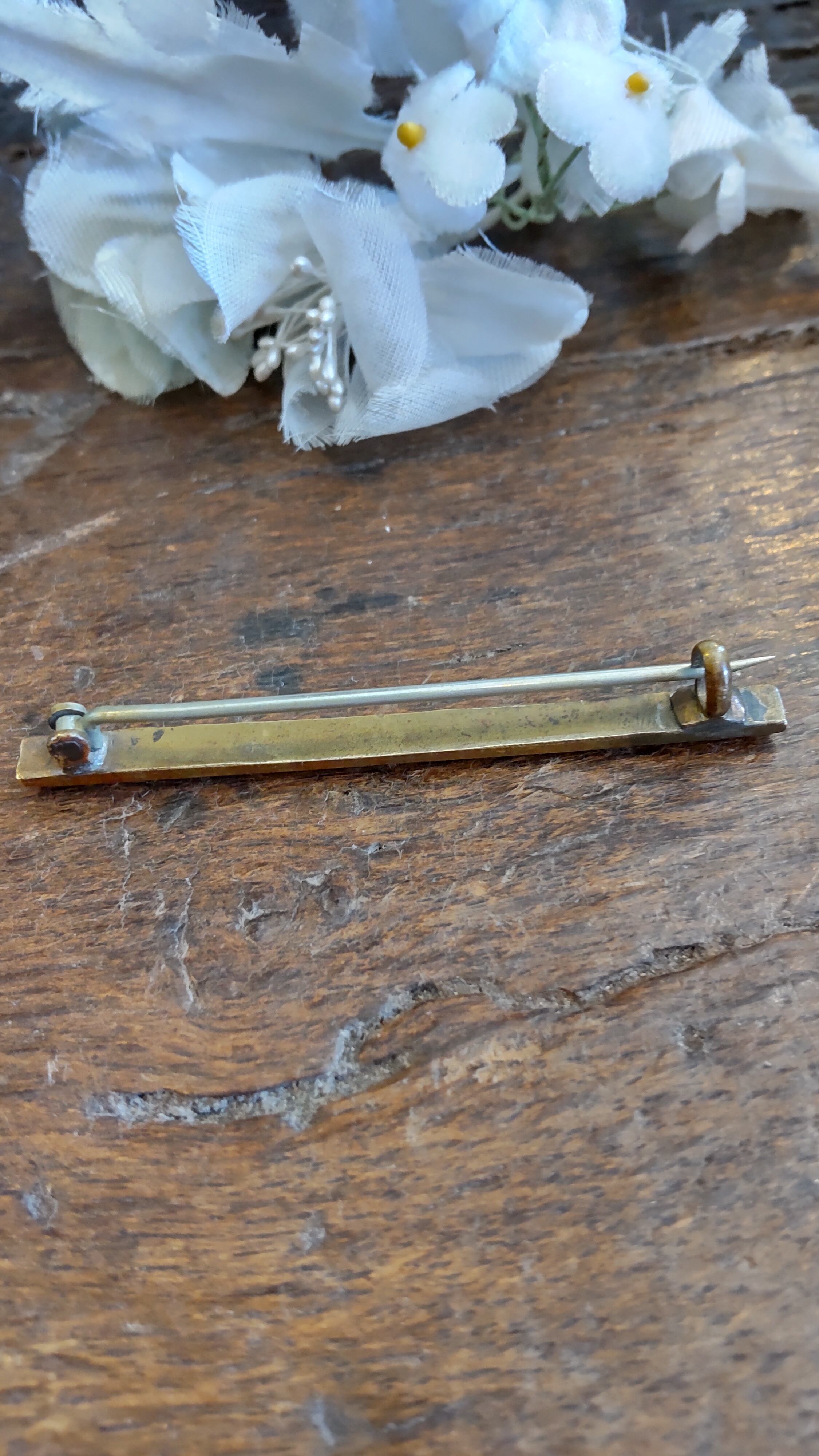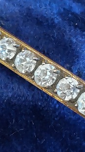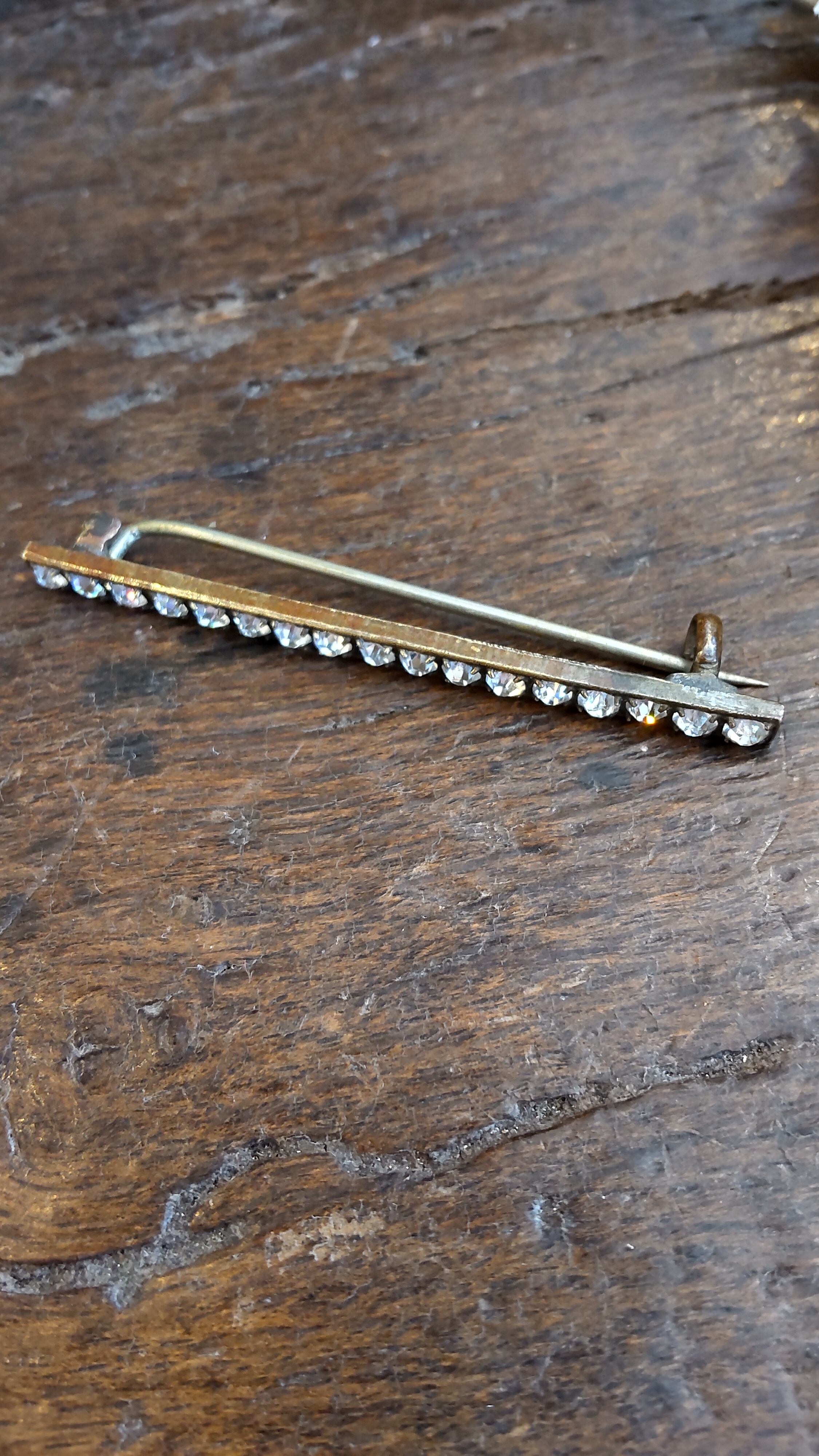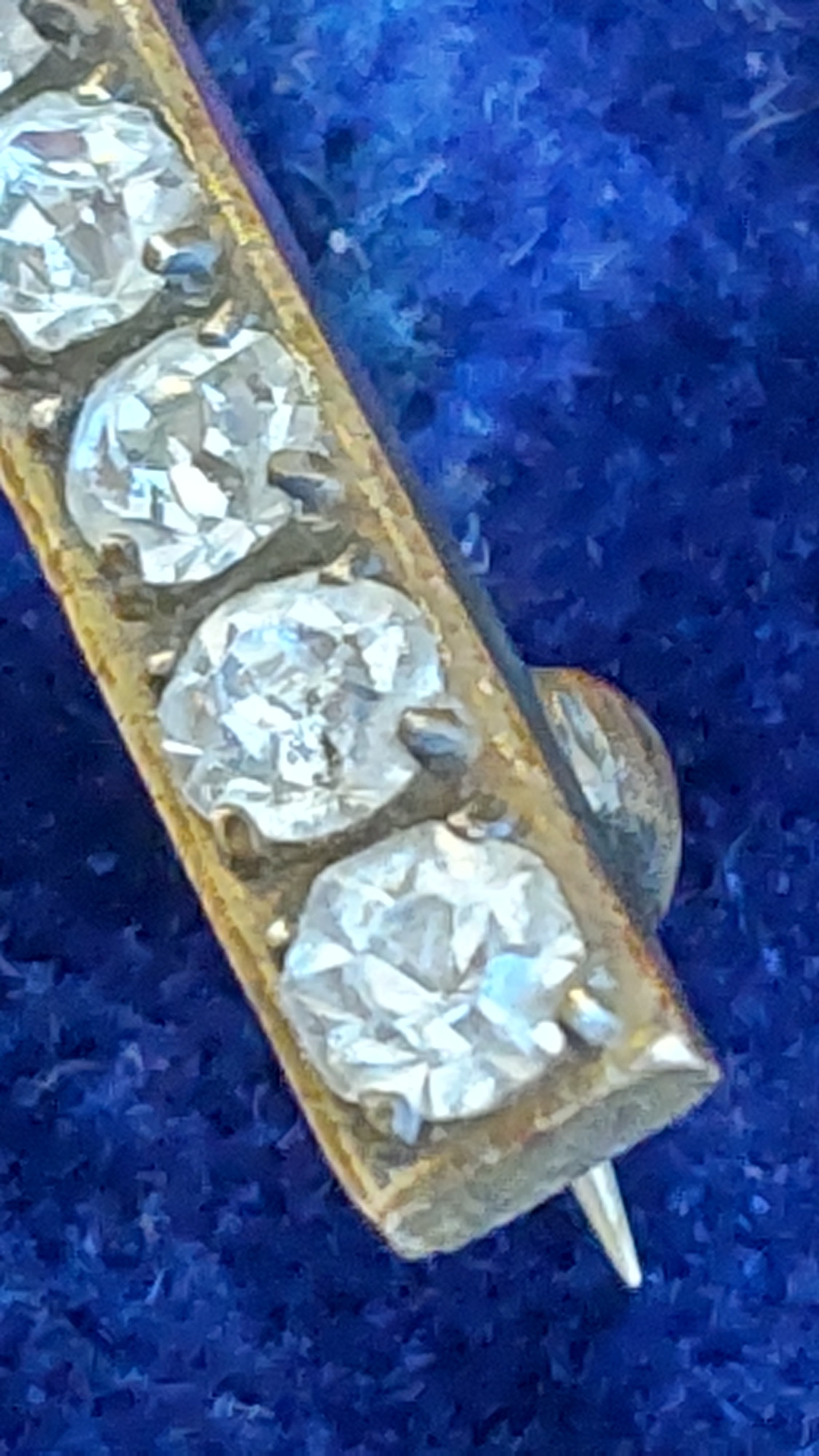 1920年代頃の17粒のガラスのクリスタルがひと粒ずつ爪留されている丁寧な作りのバーブローチです。