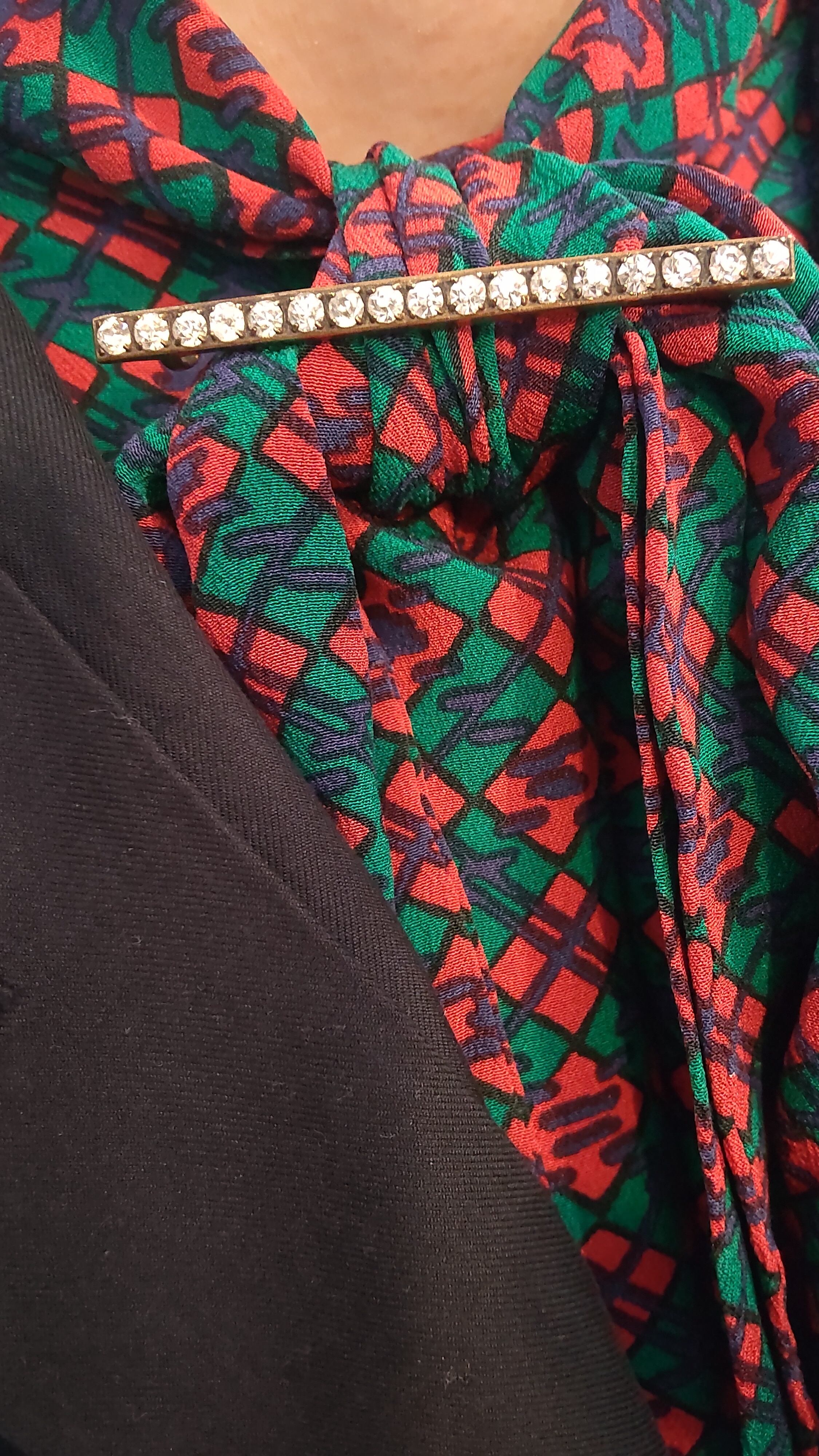 シルクのタイの結び目の隙間に通して撮影してみました洋服に穴を空けなくても使えました。
